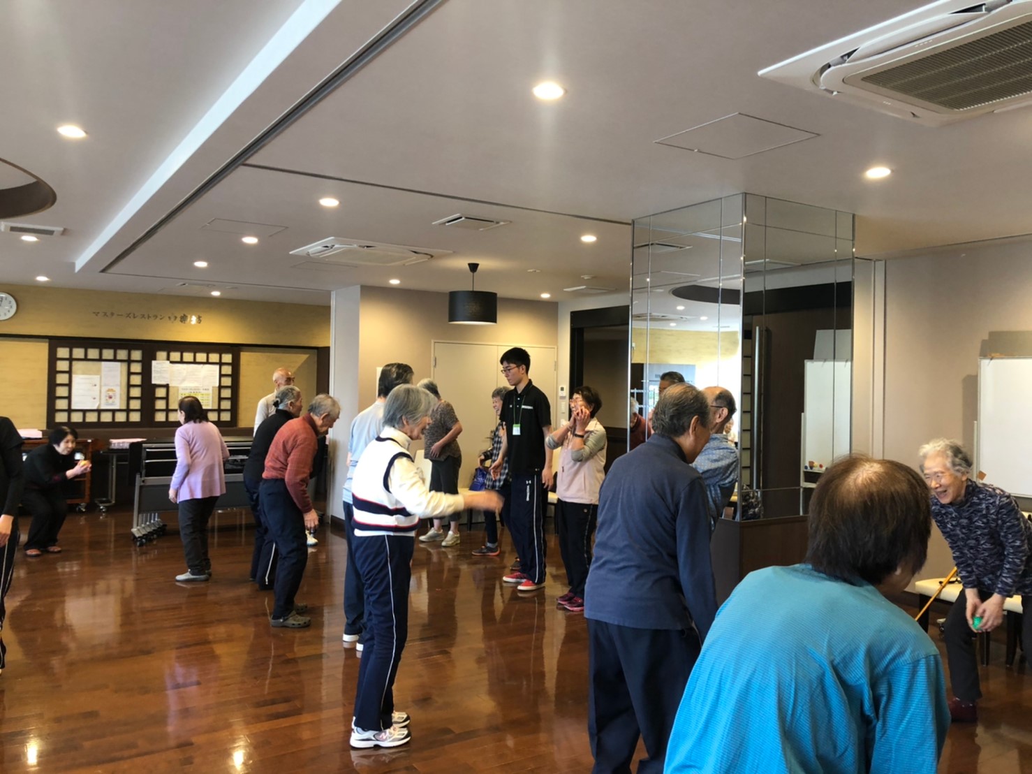 提携先であるハイネスコーポレーション様が管轄する高齢者専用マンションで、スポーツ福祉専攻2年生の介護予防運動指導実習が行われました。