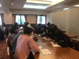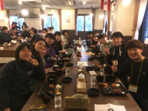 半日以上が過ぎ、夕食時には昨日始めて顔を合わせたのが嘘のような楽しい雰囲気の1年生たち!