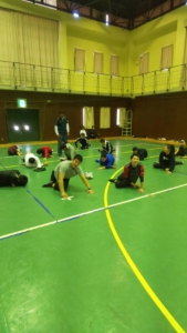 午前の研修のあとは体育館でコンディショニングプログラム➕レクリエーション。