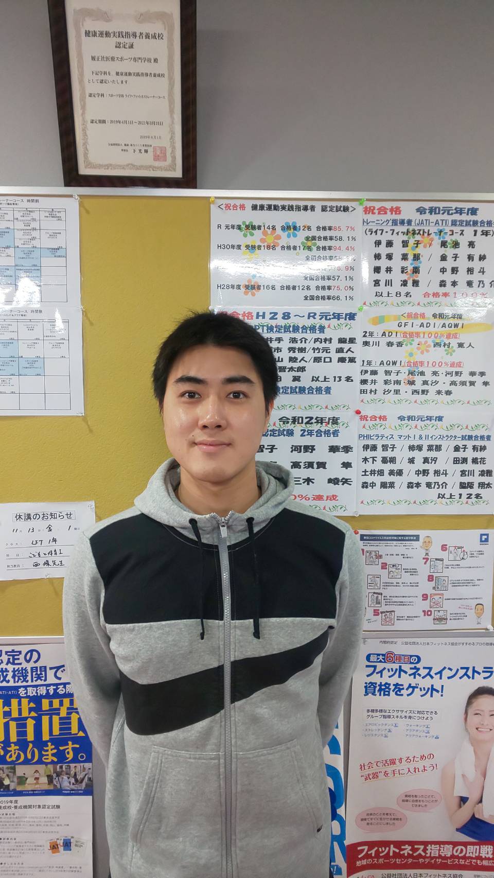 約2年間勤務した京都・滋賀を拠点とするフィットネスクラブを退職予定で、生まれ育った兵庫県尼崎市での再就職を目指し、学校に近況報告を兼ねて遊びにきてくれました。