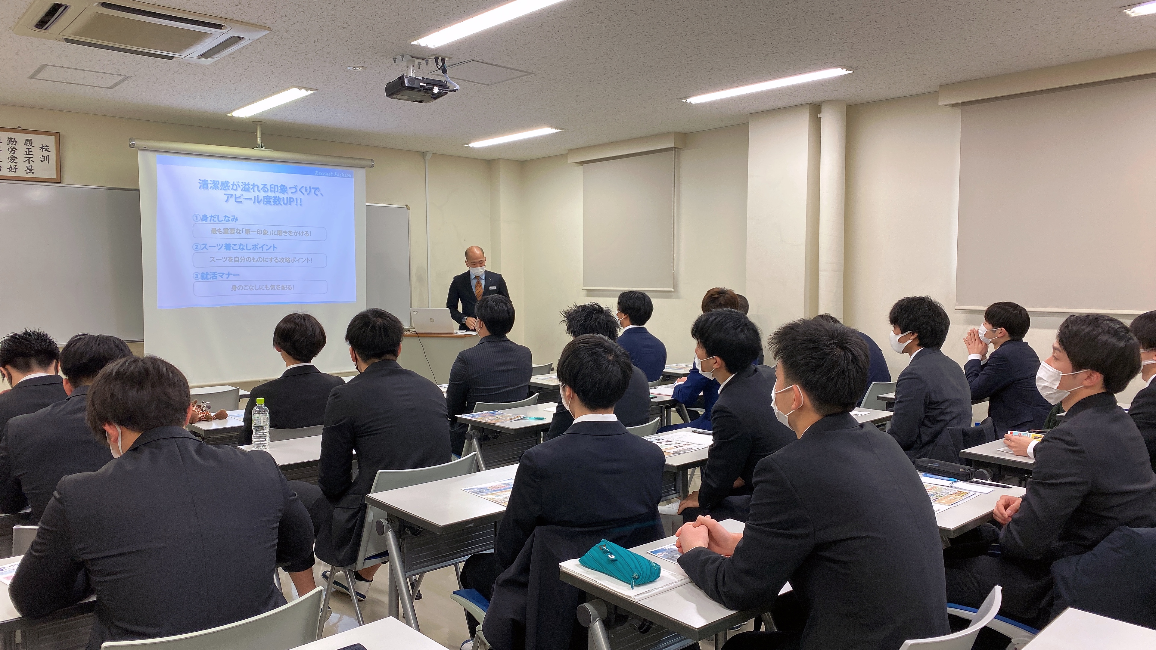 2022.02.01 リクルートでの服装 リクルートでの服装 正しい服選び。 洋服の青山の方に来ていただき、講和をして頂きました。 特に男子は、筋力トレーニングをしてカラダを大きくし過ぎ スーツがキツくなっている学生も居ました。 前の記事 記事一覧 次の記事