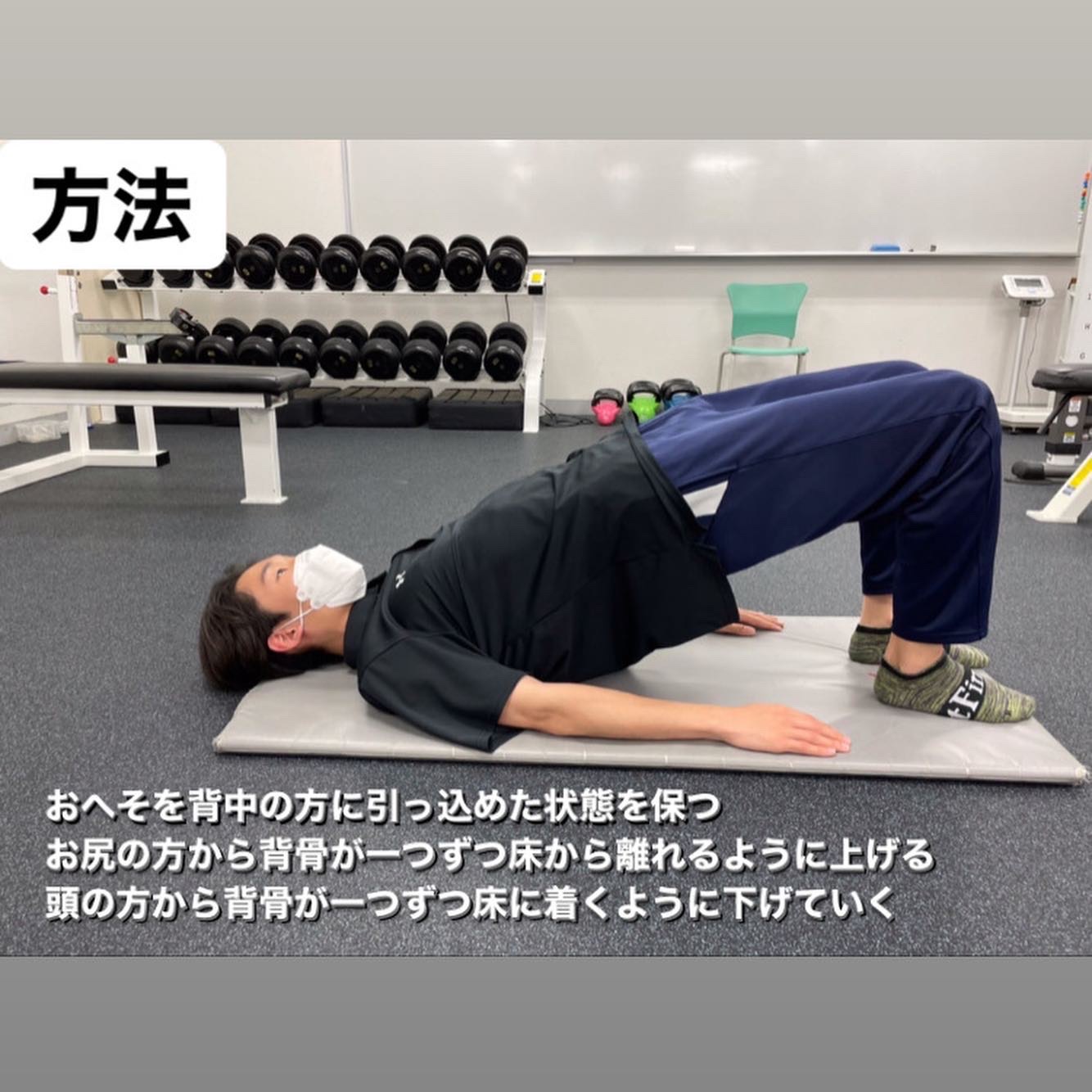 お尻の方から背骨が一つずつ床から離れるように上げる