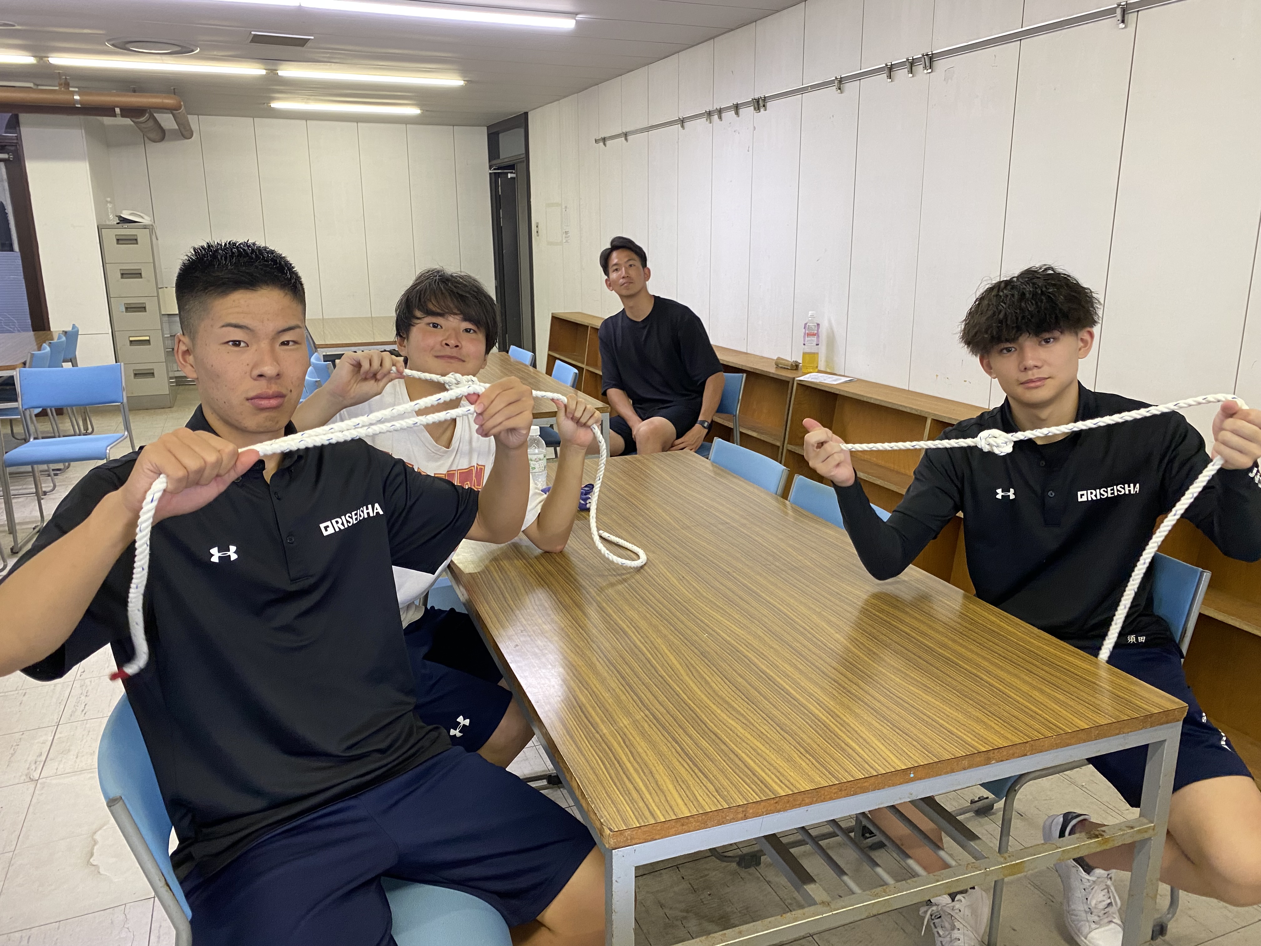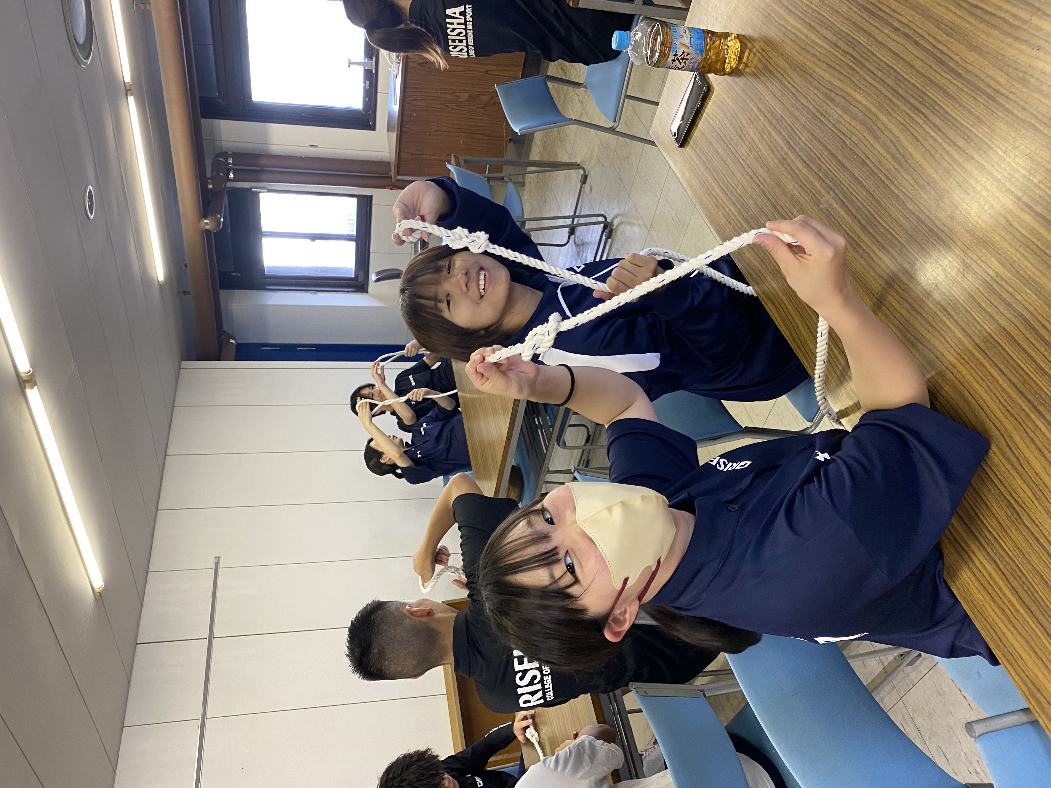 2023.08.30 キャンプ実習1日目① 8月24日キャンプ実習がスタートしました。 大阪市内は大雨 こちらは雷が鳴っていて、予定していた海洋プログラムは中止 室内でできるロープワークを実施しました。 楽しそうに受けてます! 不器用なの可愛すぎました! 絶対顔を隠す2人 海洋プログラムが中止になりましたが 楽しそうに、そして課題が色々あり勉強になっていました。 前の記事 記事一覧 次の記事
