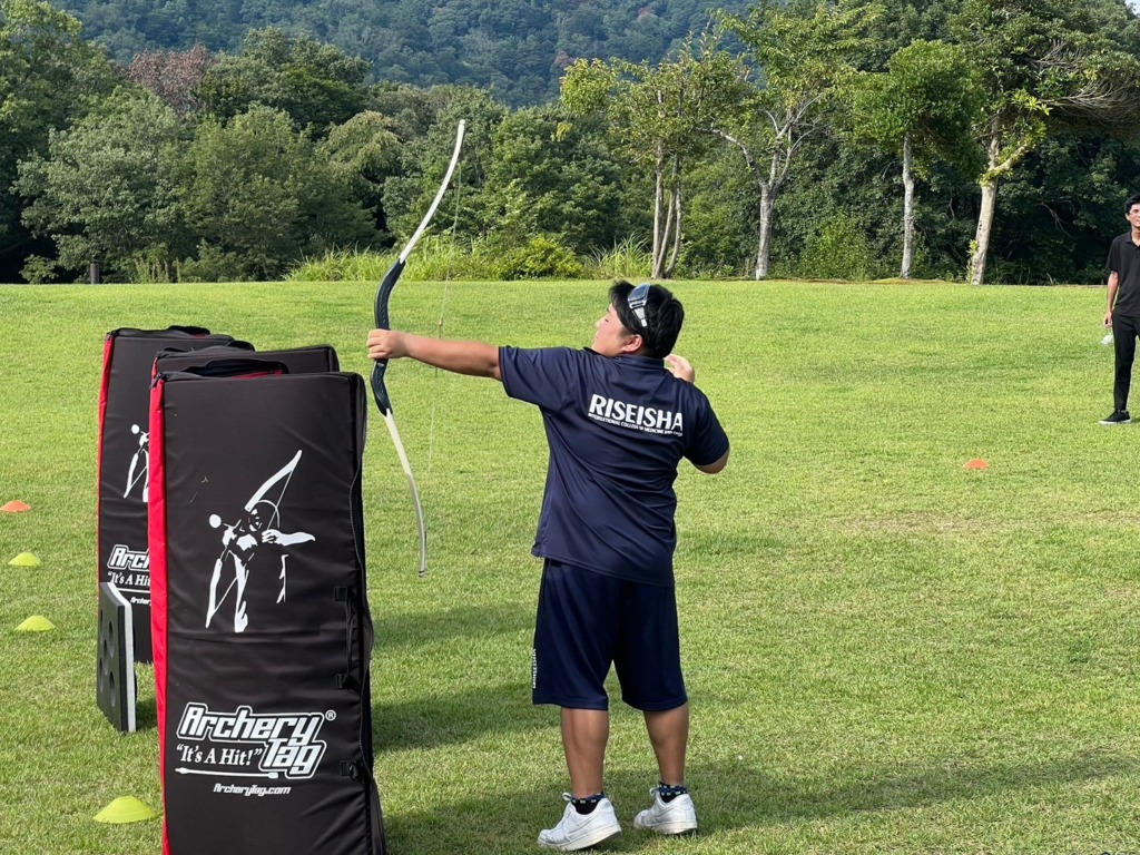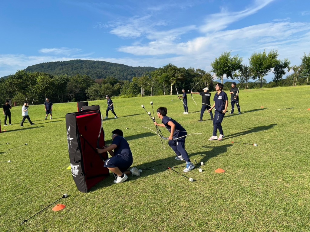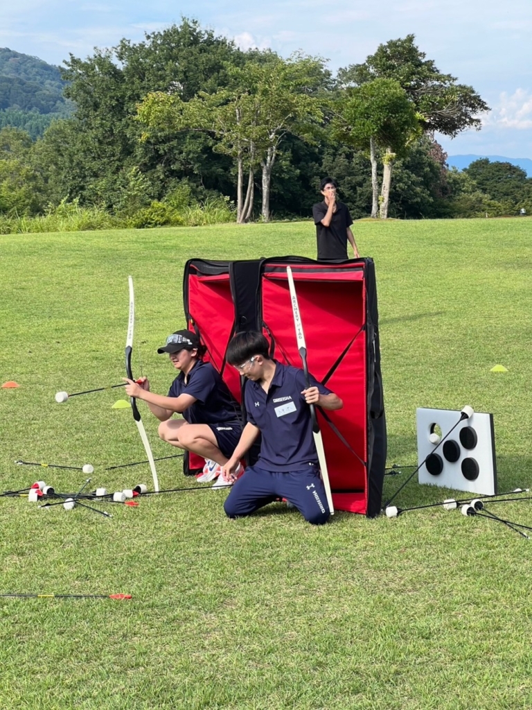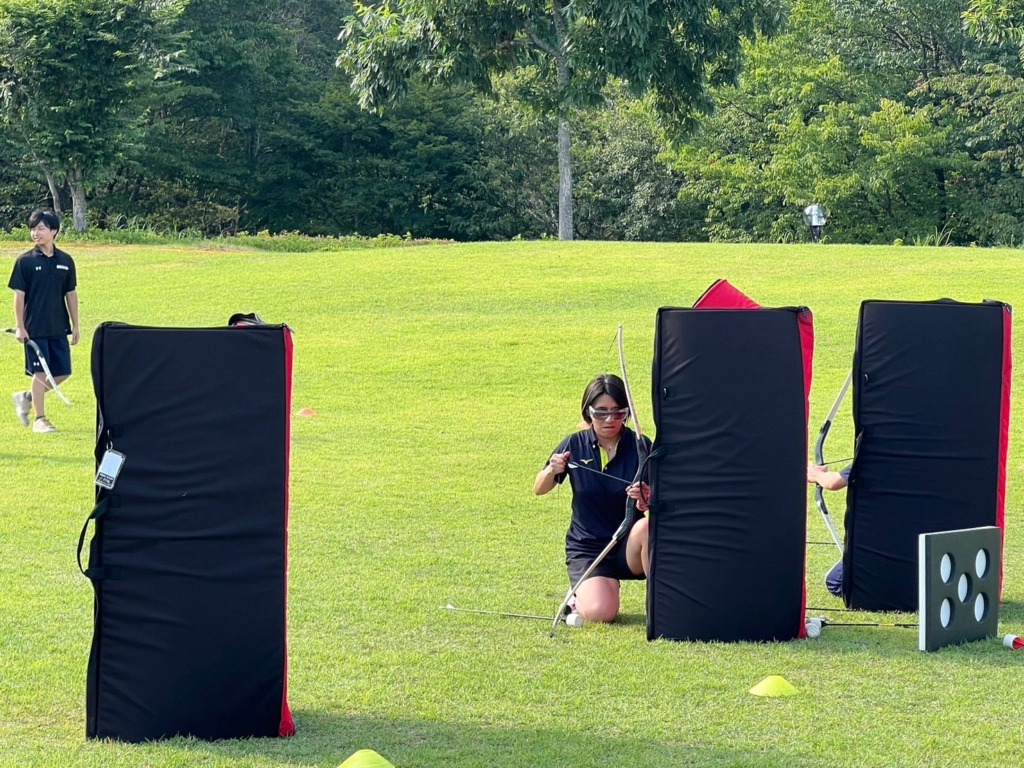 使い慣れていないアーチェリーに苦労しながら