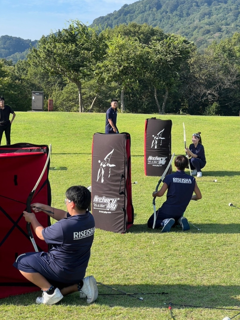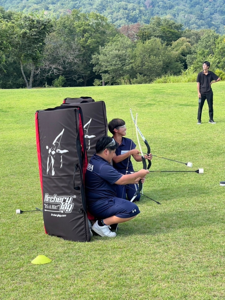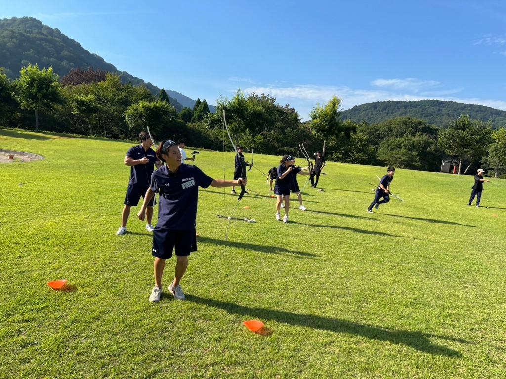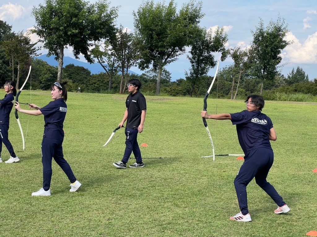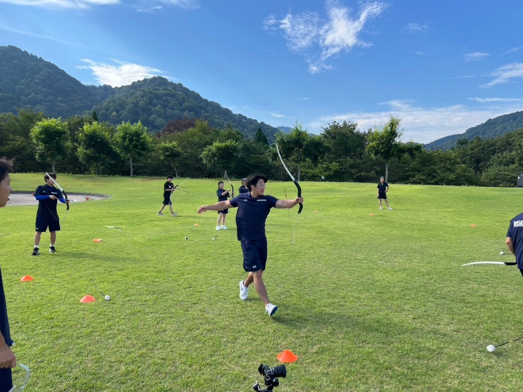 使い慣れていないアーチェリーに苦労しながら