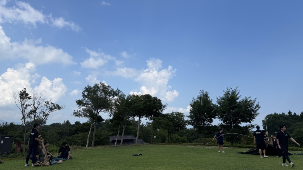 初日、到着後は開講式を経てまずはテント張り!