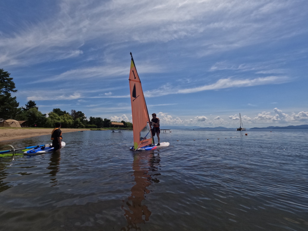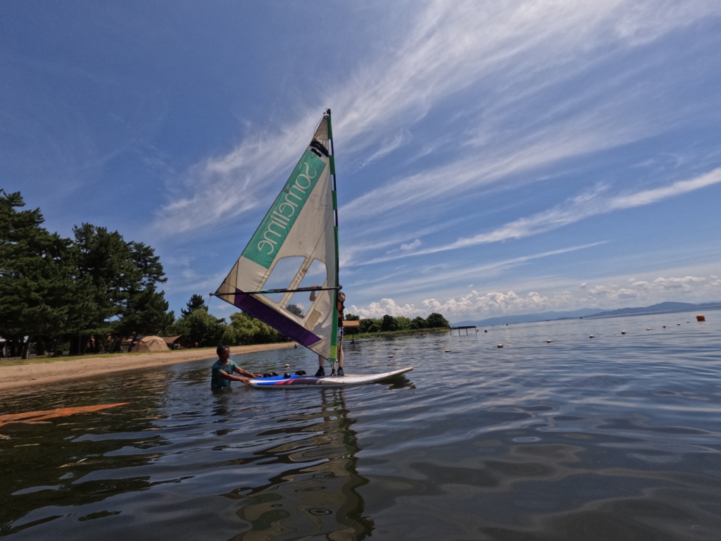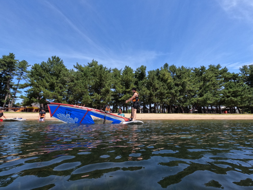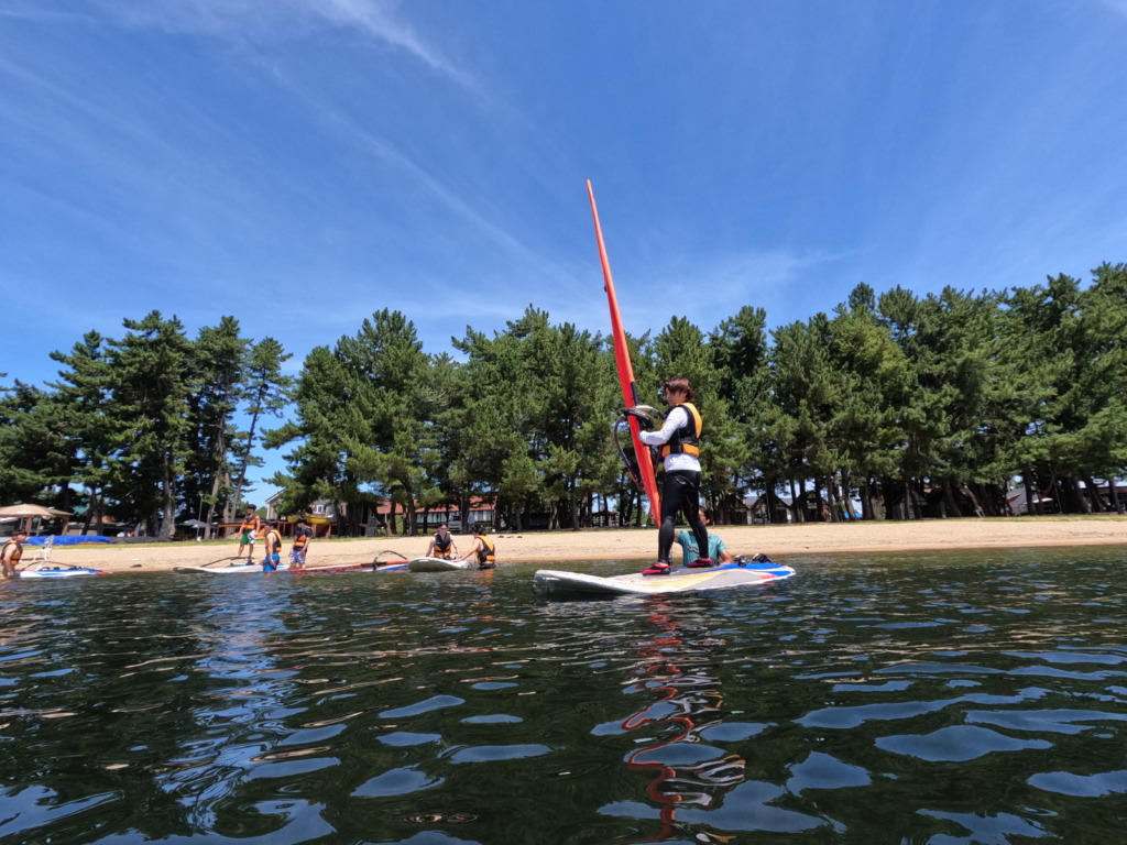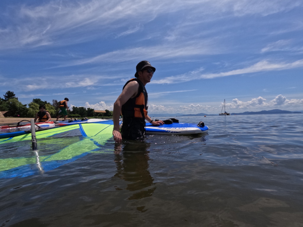 みんな不安定なボードに恐る恐るな様子で、何度も水に落ちながらも無事風を受けて進めました!