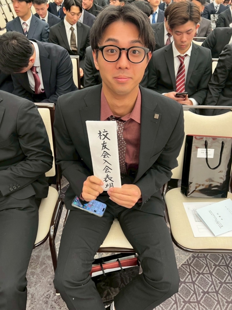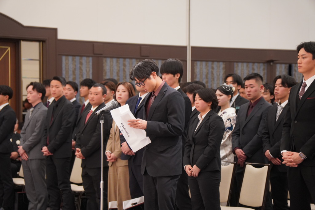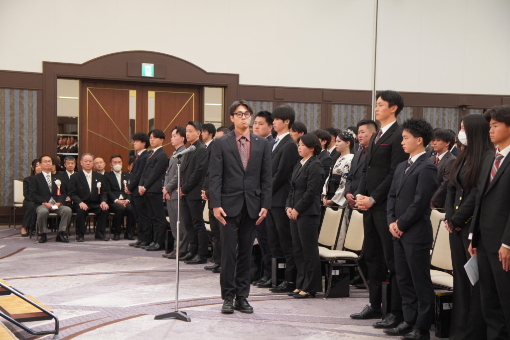 卒業生代表として、我がクラスの寺君が校友会入会宣誓を行いました。