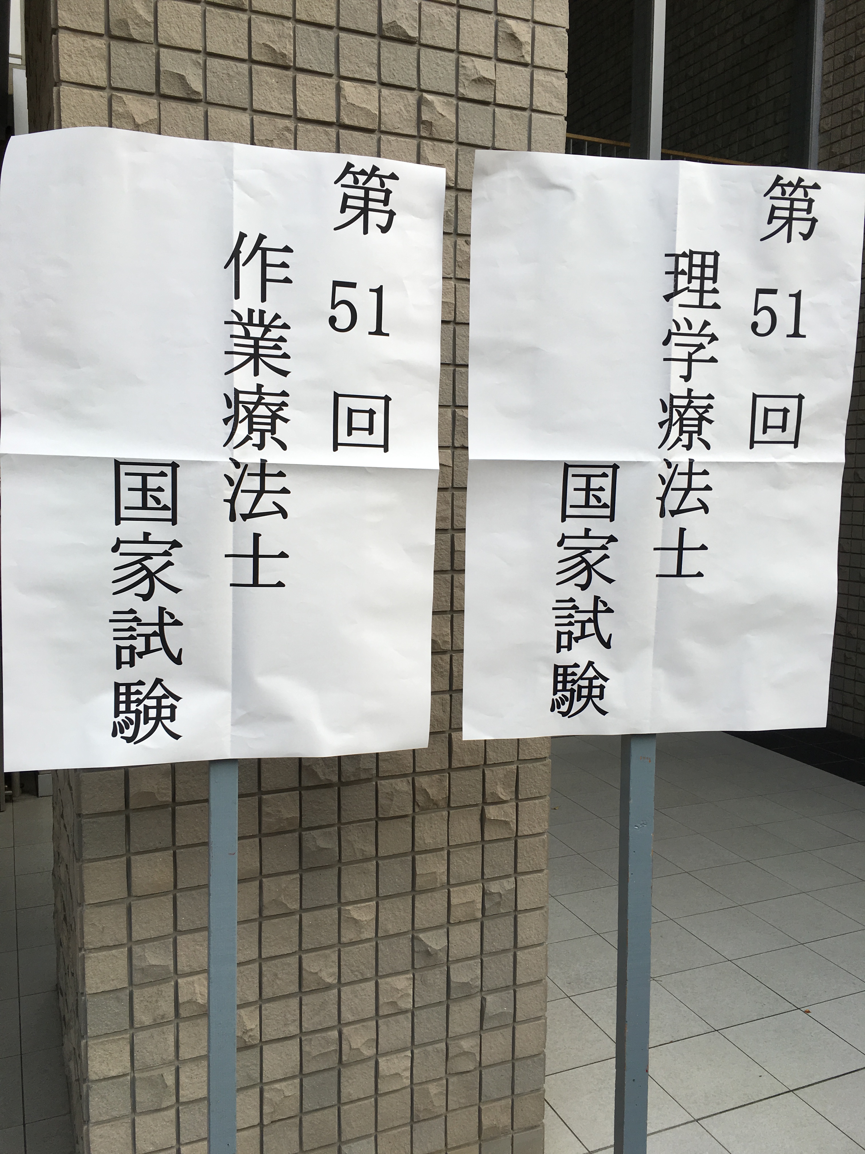 2016.02.29 第51回理学療法士国家試験 平成28年2月28日(日) 第51回理学療法士国家試験が開催されました。 本校からは、理学療法学科8期生が受験いたしました。 試験会場の最寄り駅で集合。徒歩で会場に向かいます。 履正社医療スポーツ専門学校学生の国家試験会場は、大阪商業大学。 受験者が多いため、大阪会場は数カ所に分かれているのです。 国家試験直前に担任の先生から激励のお言葉。 合格発表は3月29日(火)午後2時です。 満開の花が咲きますように。 とっしゃん2号 前の記事 記事一覧 次の記事