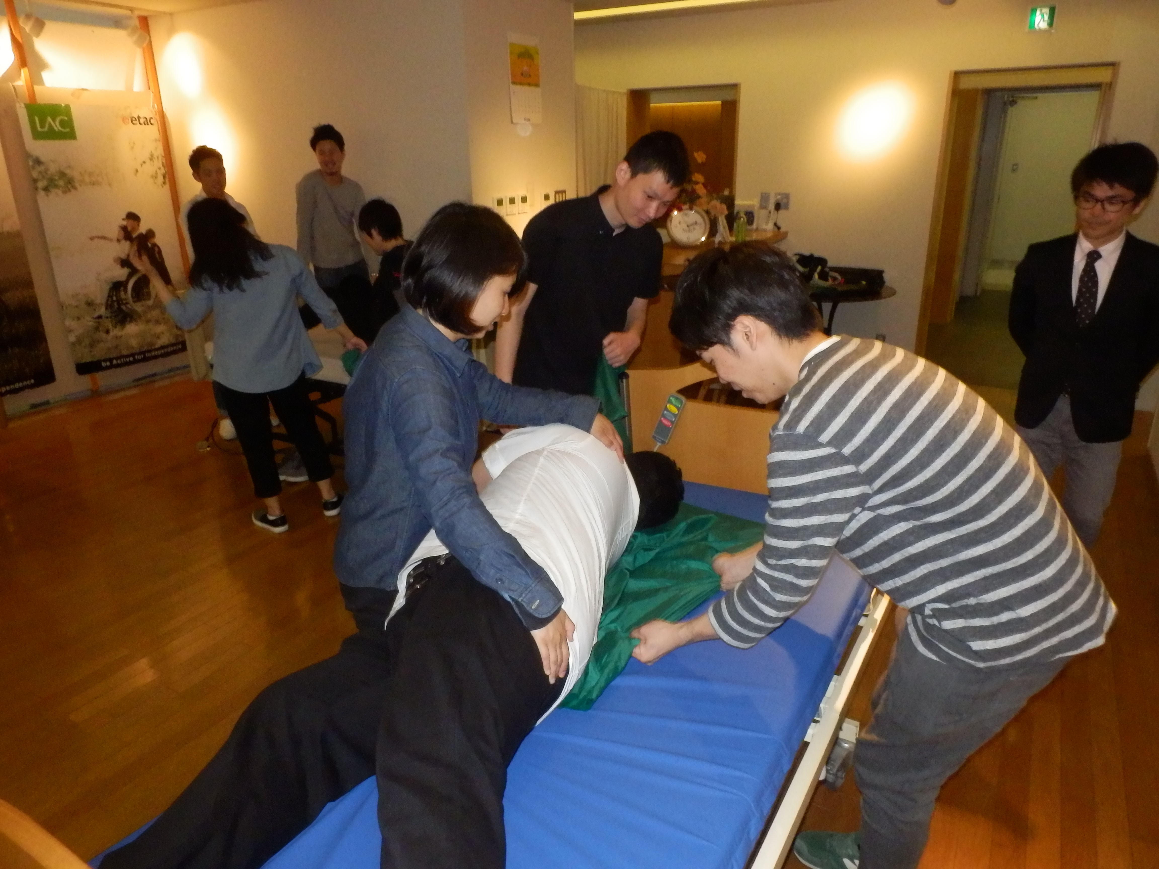 今回は福祉用具メーカーの研修センターにて、介助のスペシャリストによる授業を受けました。