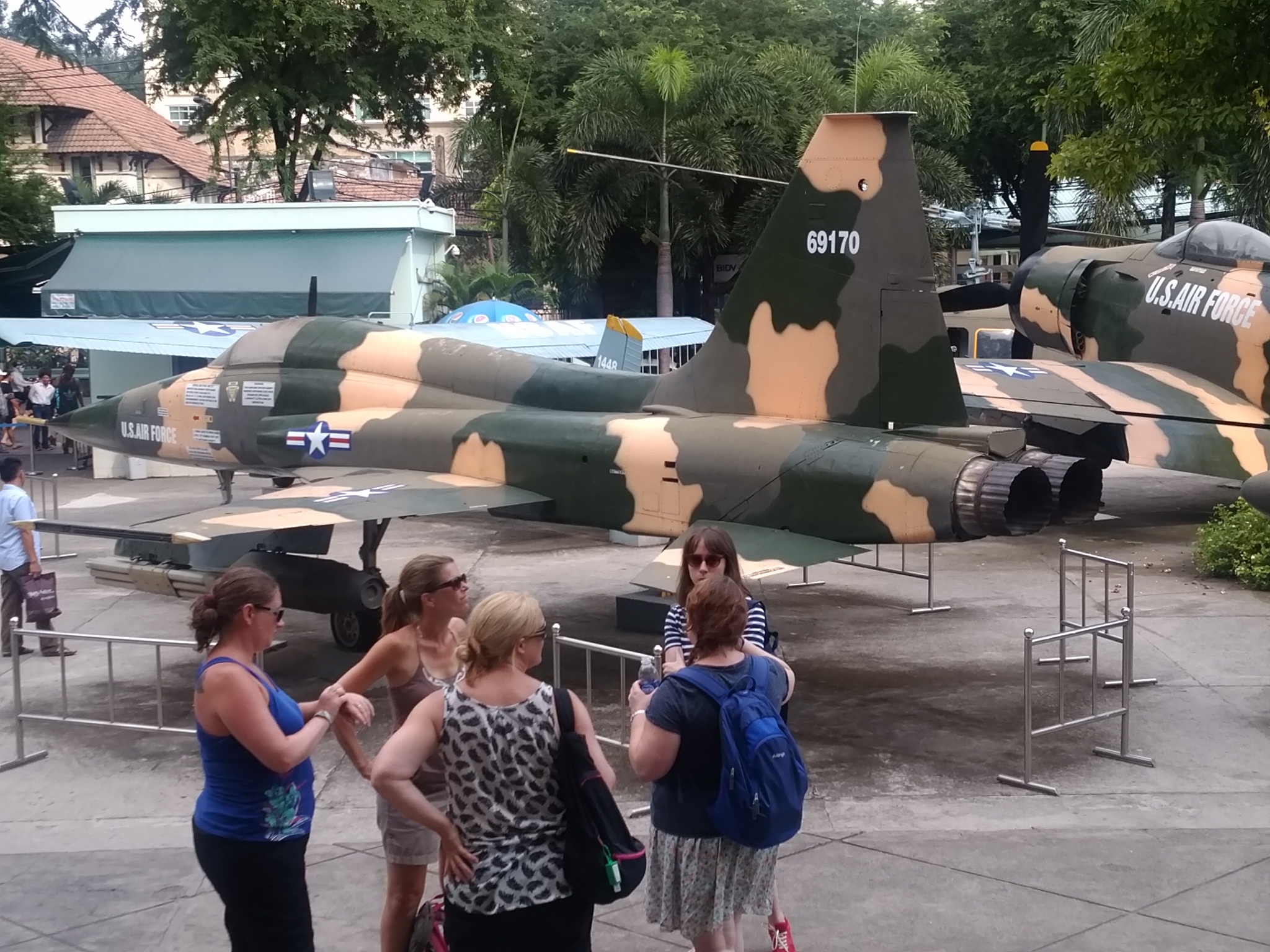 午前10時30分に関西空港を出発し、13時50分(日本時間15時50分)にベトナムタンソンニャット空港に無事到着、バスに乗りホーチミン市内にある戦争証跡博物館を見学、ベトナム戦争で使用された兵器の展示や一目で被害の大きさを確認できる写真を掲示するなど、学生達は真剣な面持ちで見学し、二度とこのような悲劇が繰り返されてはならないという強い思いを感じずにはいられませんでした。