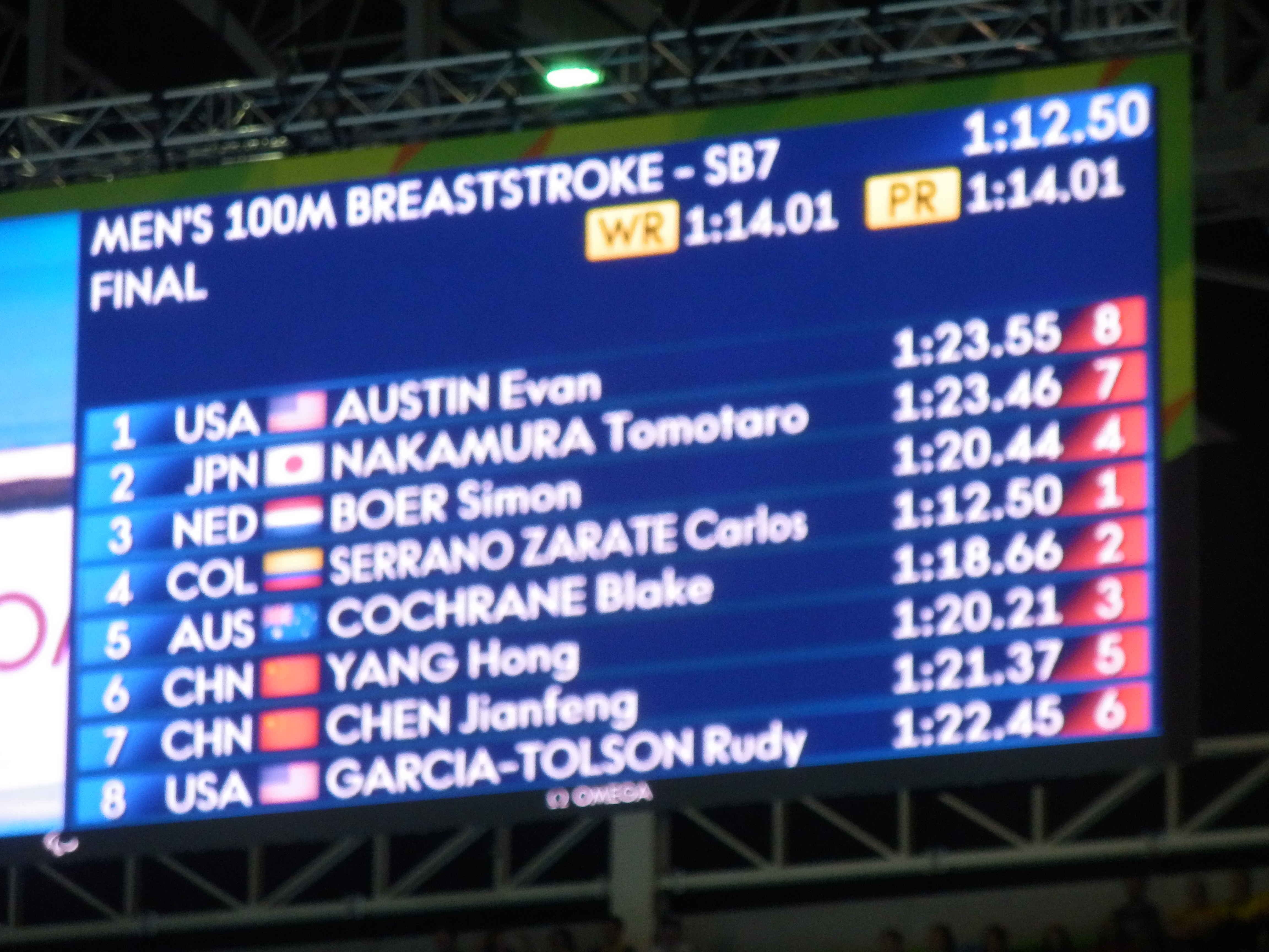 9月10日、リオパラリンピック競泳(運動機能障害)では、ロンドン大会の銀メダリスト・中村智太郎選手が100m平泳ぎに出場しました。