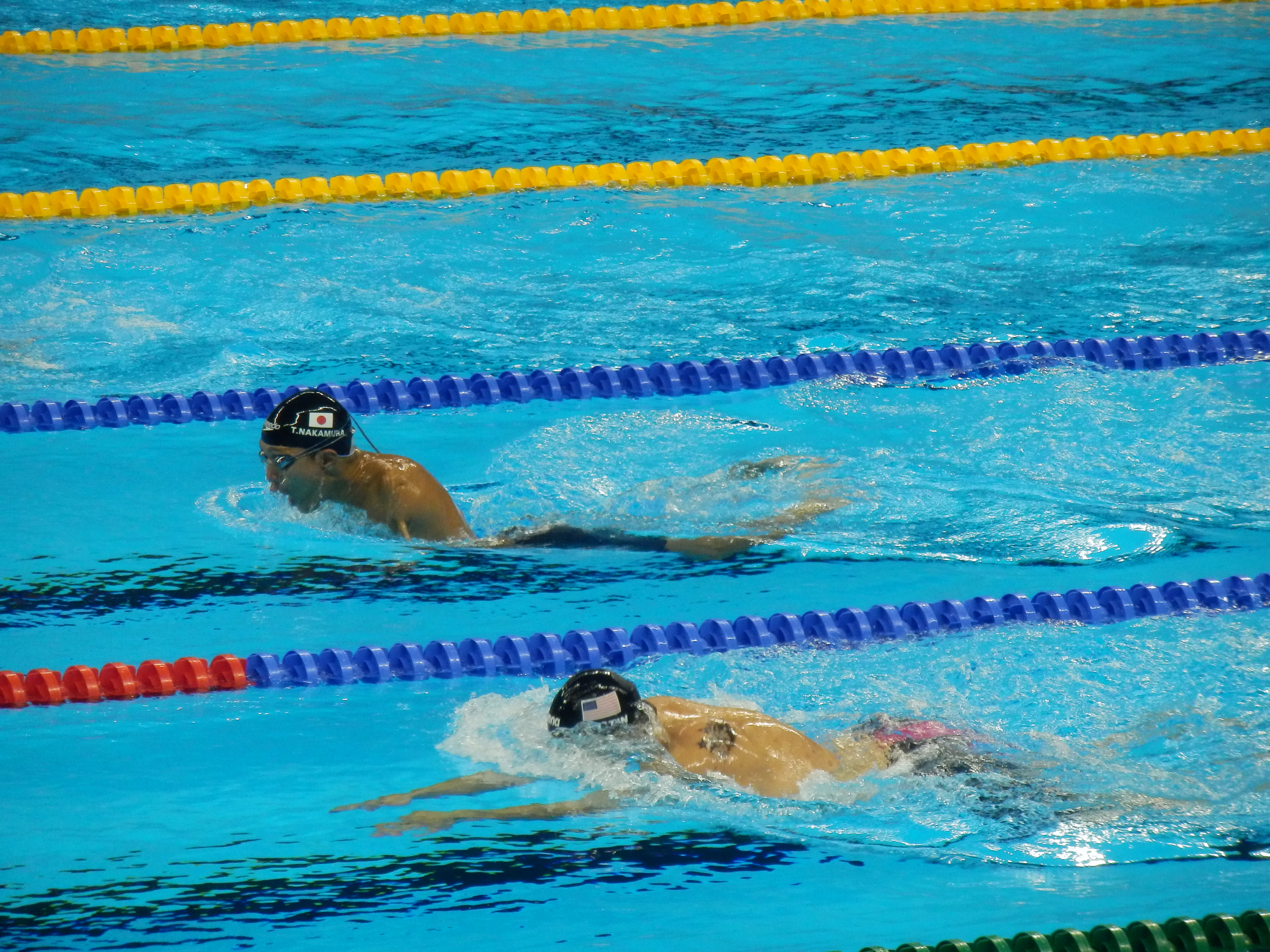 中村選手は慌てずに大きなキックで前後半ほぼ同じペースで泳ぐのが特徴です。