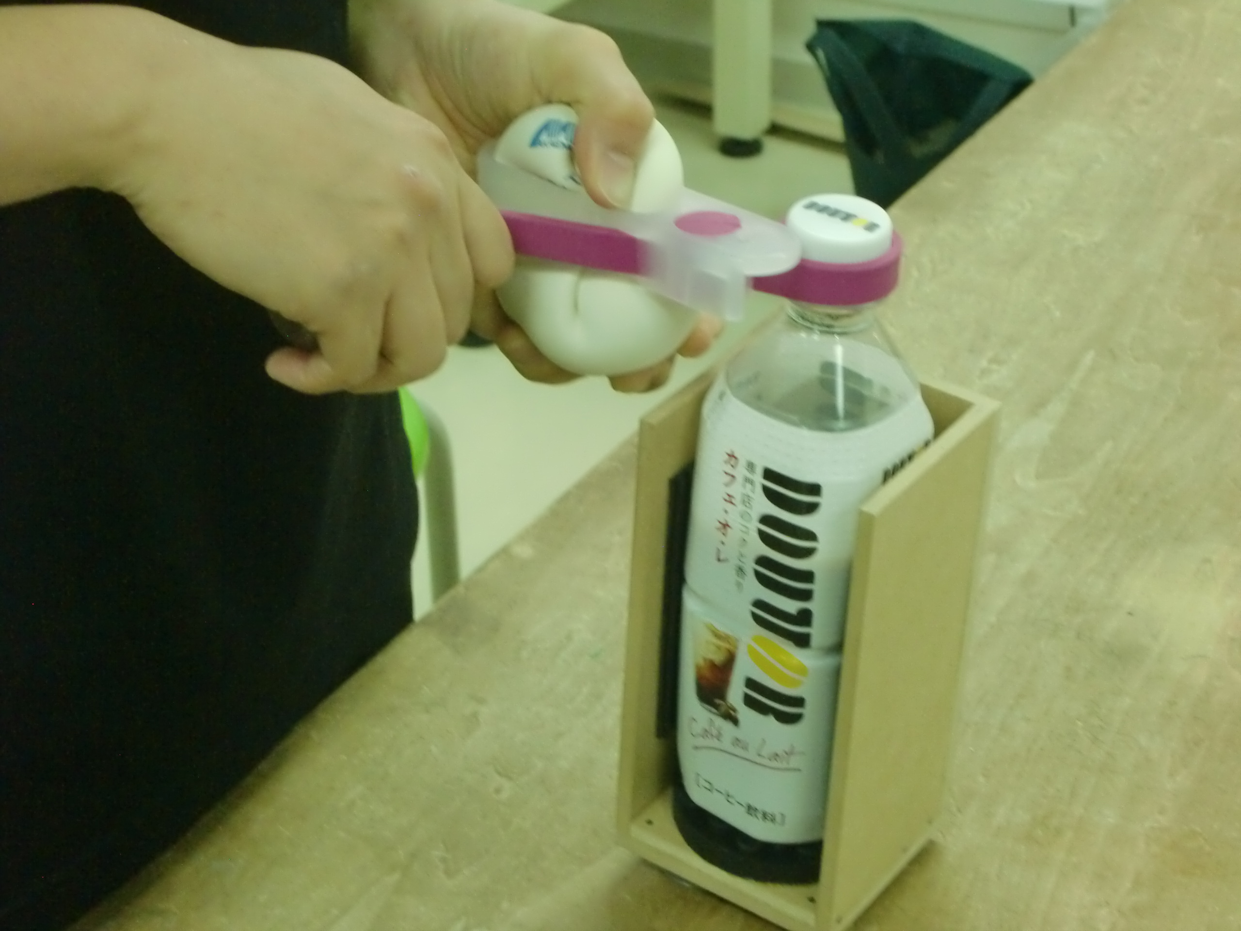 ② 関節リウマチで手指の変形や痛みがあるため、細かい動作ができにくい患者さんに対して使用するペットボトルオープナー