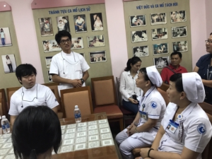 ホーチミン市内にあるチョーライ病院(総合病院)ではベッド数が1930床に対して患者さんは1日あたり約2700名も入院してくるそうです。そのため、病室はもちろん廊下にまで簡易のベッドを設置している状態です。そのような環境でも患者さん一人に対して家族が付き添っておられ、お世話をされています。