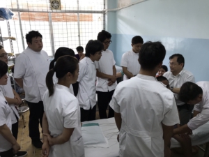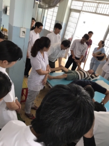 脳性麻痺の患者様を目の前に学生達は戸惑う様子もありましたが、興味をもち積極的に治療を見学していました。