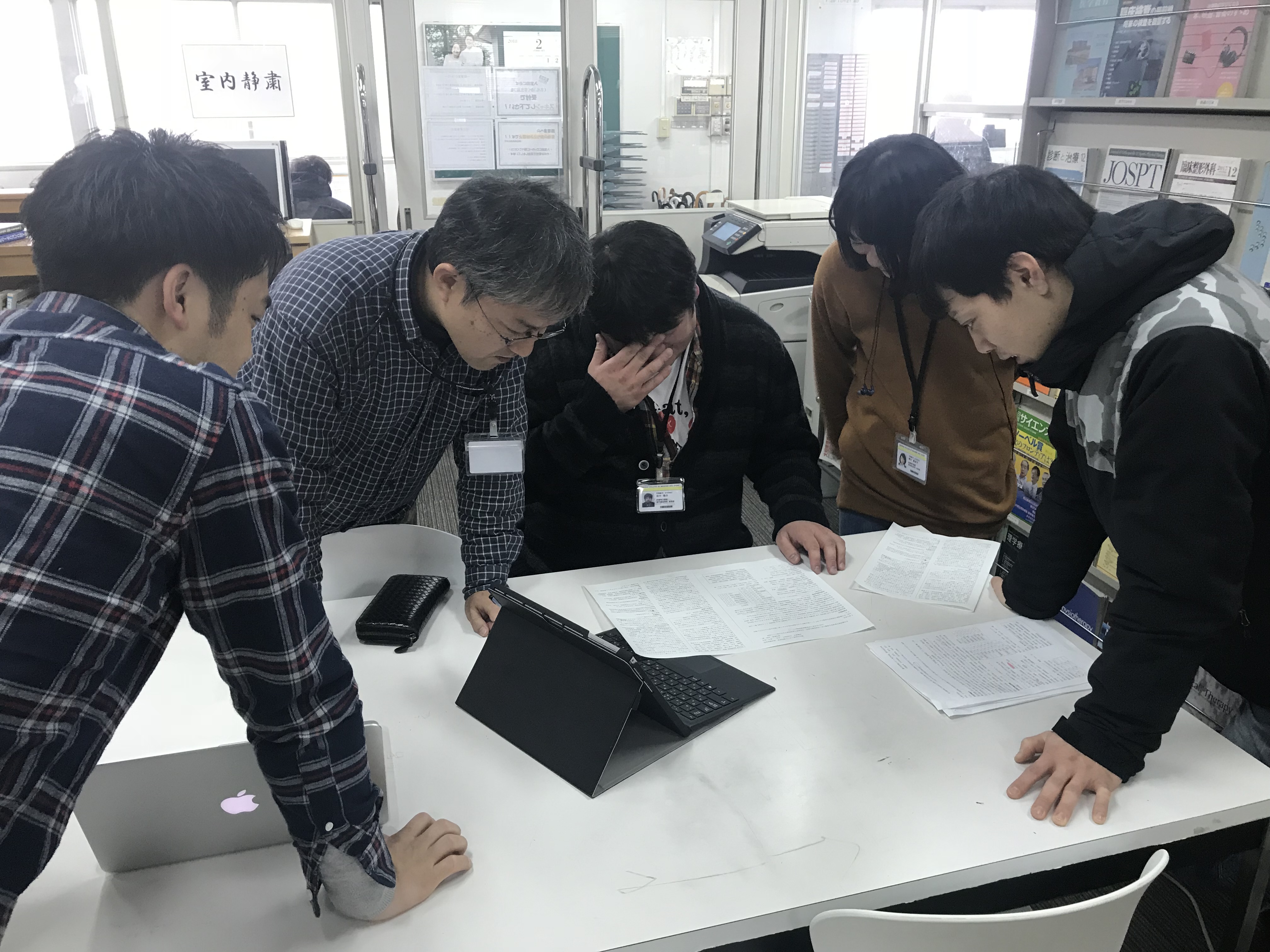 実習中には夕方に学校へ寄って図書館で調べものをしたり、教員や友人に相談している学生もいます。また、本日は土曜日で実習が休みであることもあり、昼間から学校に来ている学生もいました。