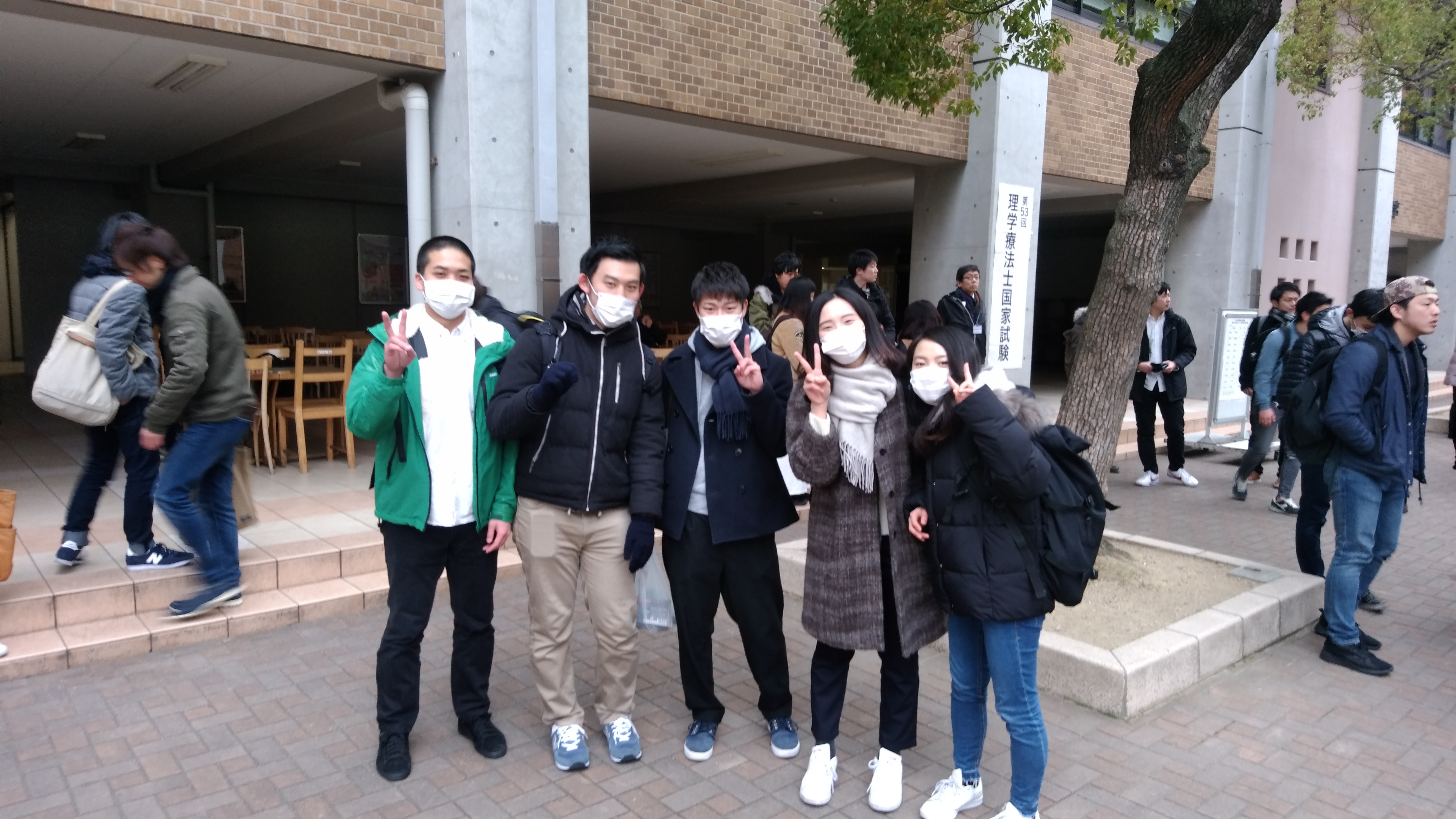 2018.02.27 『国家試験 行われる』 平成30年2月25日(日)、第53回、理学療法士国家試験が近畿大学(東大阪キャンパス)にて実施されました。 我々履正社の一行は、朝7:50時に近鉄長瀬駅に集合し、 「全員悔いを残すことなく全力で戦う」ことを誓い、いざ試験会場へ!会場が近づくに従い学生の緊張度は高まり、その表情は戦士へと変わっていました。我々教員は学生がそれぞれの試験会場へと歩を進める背中を見守りながら、全員が合格し4月から理学療法士として新たなスタートが切れるよう願わずにはいられませんでした。 前の記事 記事一覧 次の記事