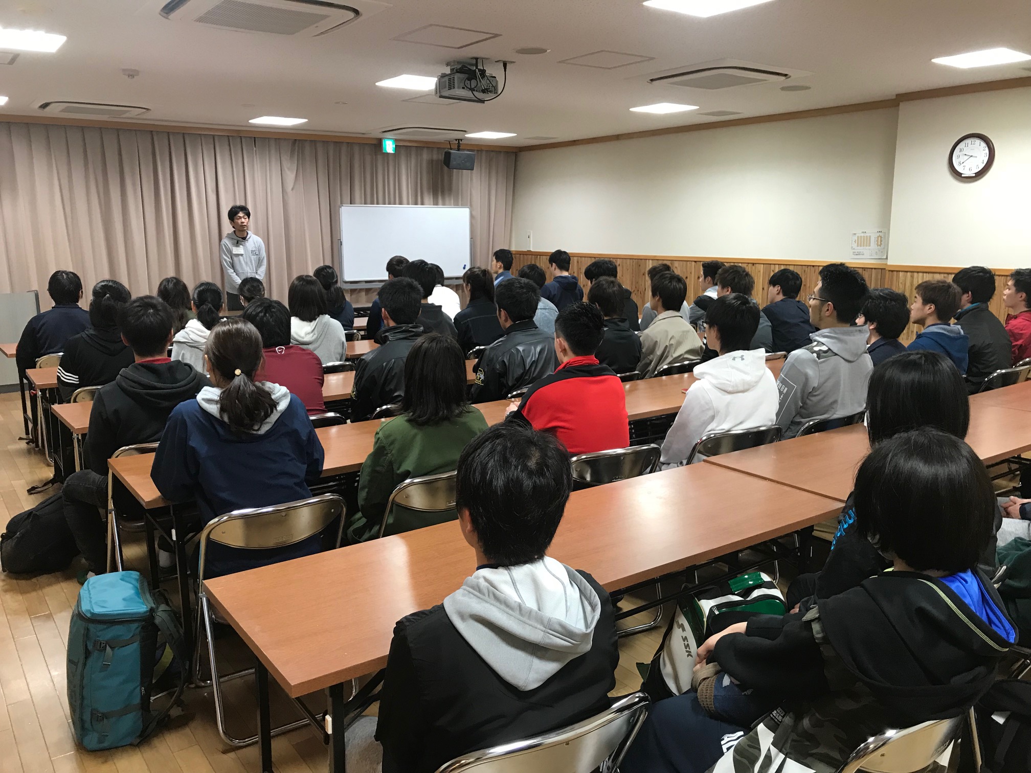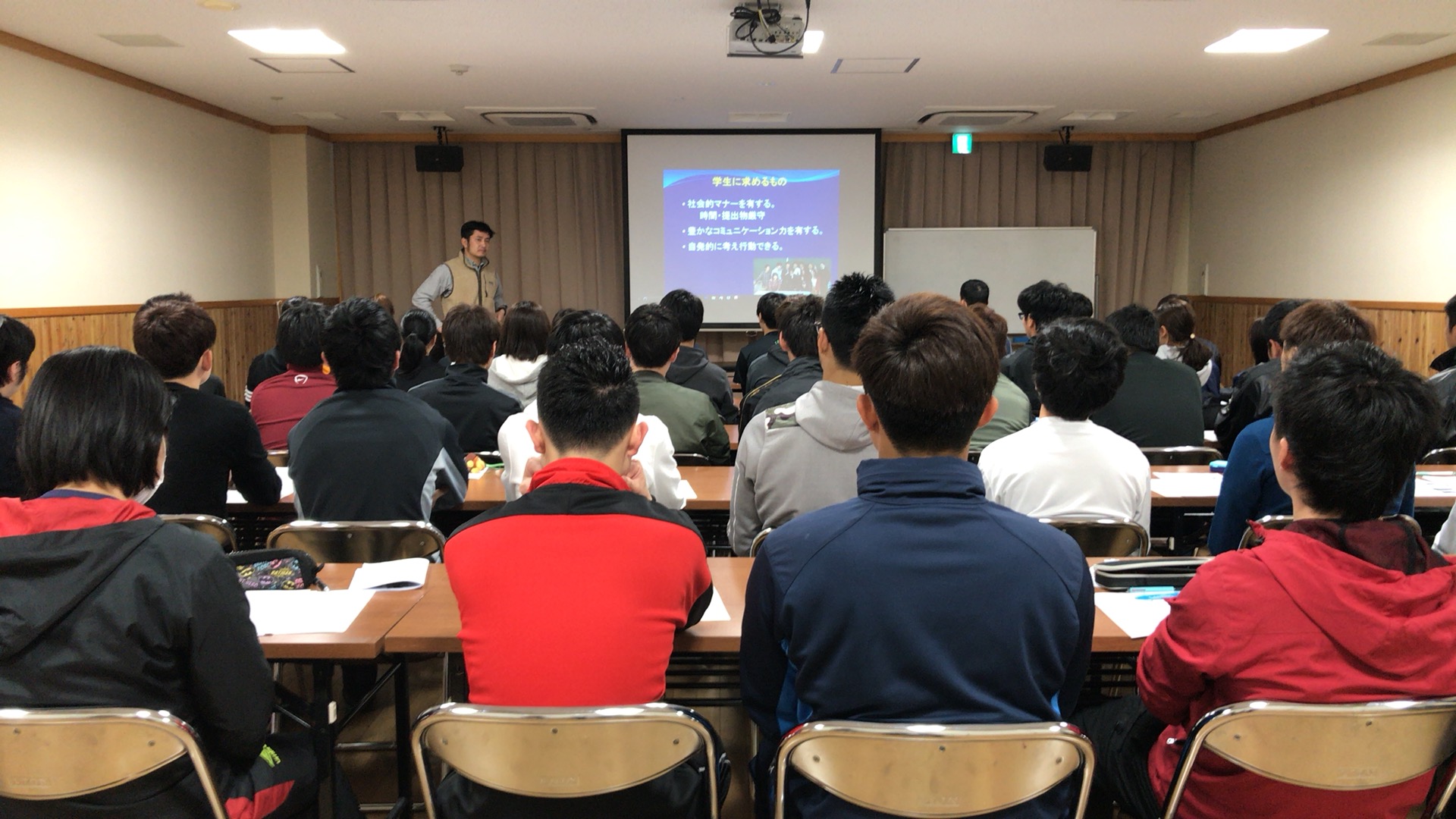 2018.04.05 新1年生オリエンテーション合宿① 昨日、入学式が終わり本日より2日間吹田市自然体験交流センターにて 新入生のオリエンテーション合宿を行っています。 これは、学校生活がスムーズに行えるため学校の決まりごとを理解したり、 学生同士が個々のパーソナリティを理解するために交流を図るために行います。 9時半に集合し、10時より年間行事の説明、学科の説明を行っています。 本日より2日間この様子をお届けします。 前の記事 記事一覧 次の記事