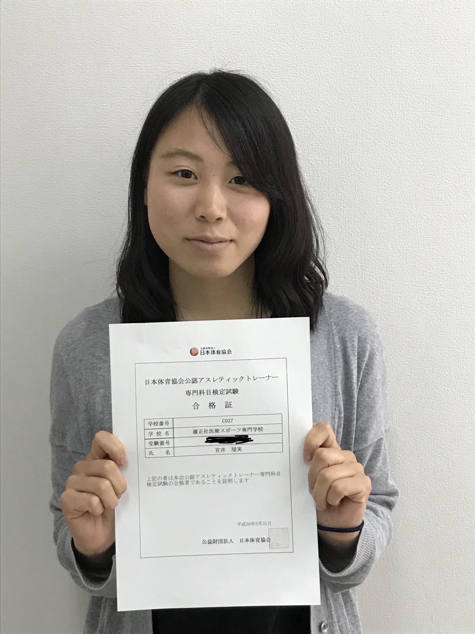 2月10日に行われた日本スポーツ協会公認アスレティックトレーナーの試験に理学療法学科から2名、既卒生が1名合格しました。