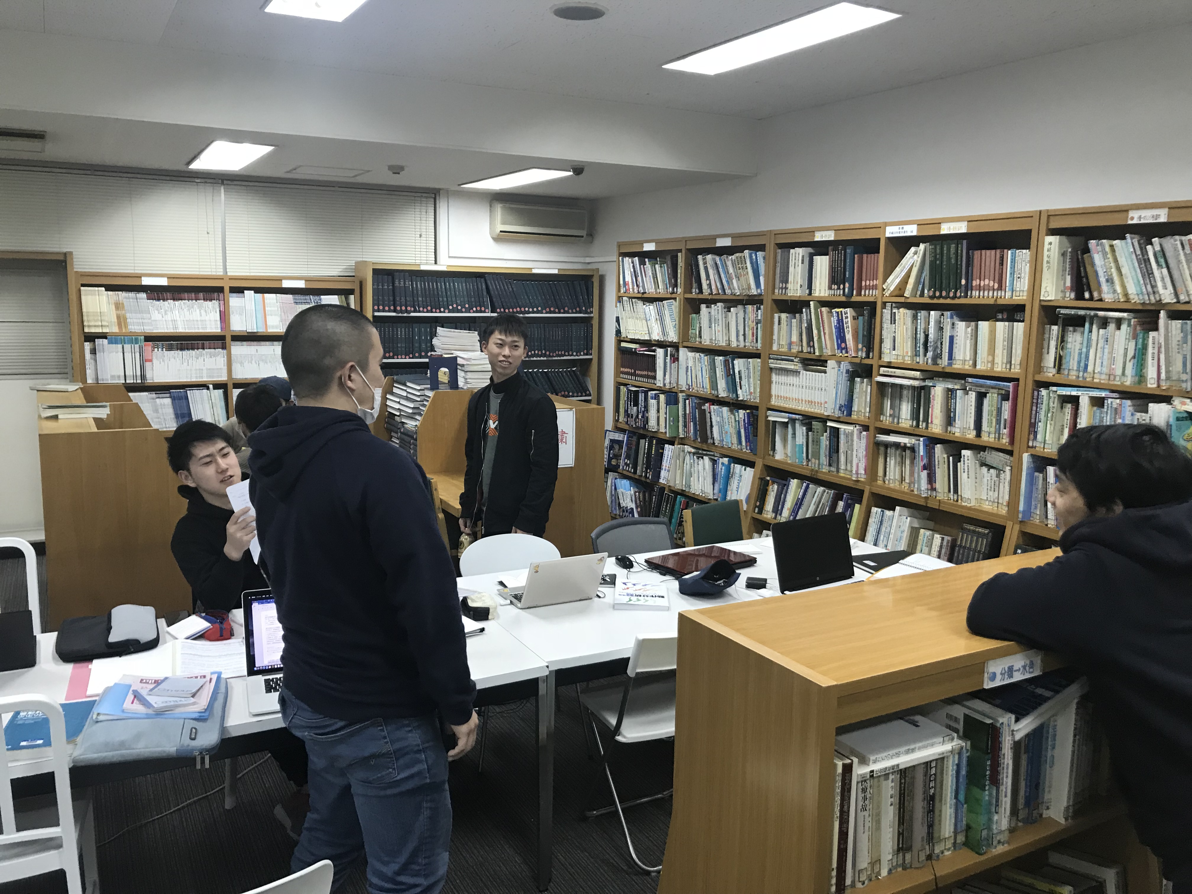 図書室では、患者様について悩んでいることを相談しており、お互い考えたり、アドバイスを送ったりしていました。