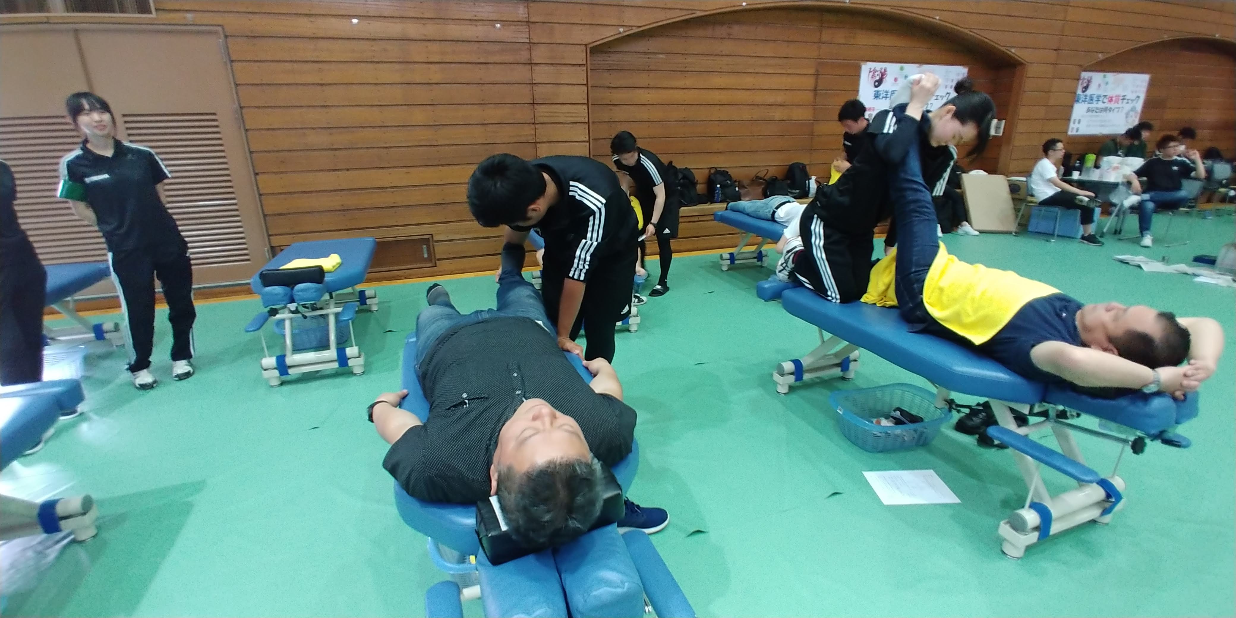 屋内に入ると、医療ブースにて『理学療法学科での血圧チェックと指導』『柔道整復学科でのペアストレッチ』『鍼灸学科での問診や舌診にて、置き針(円皮鍼)留置やや薬膳茶の提供』があり、全ての治療を受けて全身爽快になりました。