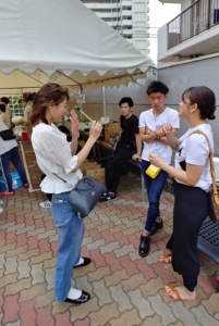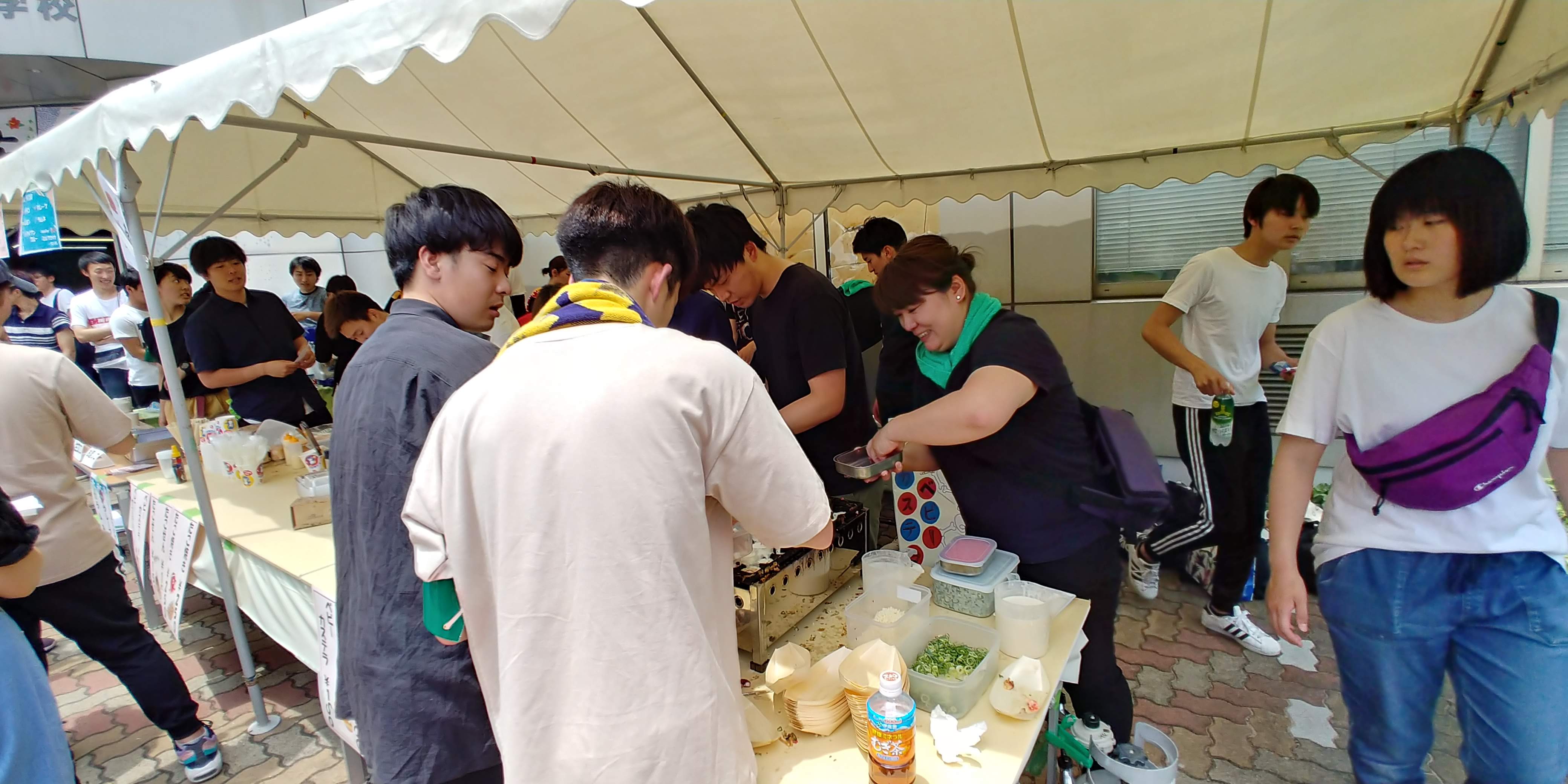屋外の出店は、焼きそば、たこ焼き、鶏唐揚げ、フランクフルト、フライドポテト、たこせんべい、冷やしキュウリ、ベビーカステラ、かき氷、タピオカジュースなど美味しいものが満載でした。調理学生の能力・練習量も、第1回目より更新していたようで感激して食べ過ぎてしまいました。