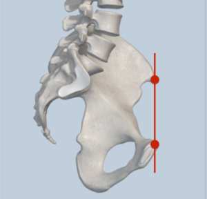 そして、両上前腸骨棘と恥骨結合が矢状面上において垂線(垂直線)で結べるか?と読み替えれるか?下の図を確認!