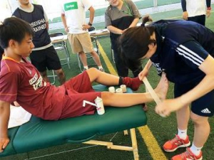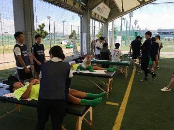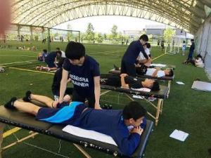 8月は、全国各地で行われているスポーツ大会、合宿などで履正社の理学療法学科学生たちが技術を高めるための実習を行っています。