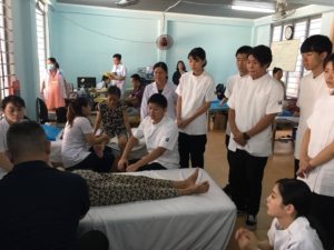 午後には、病院での患者さんの理学療法を現地のスタッフと本校学生、