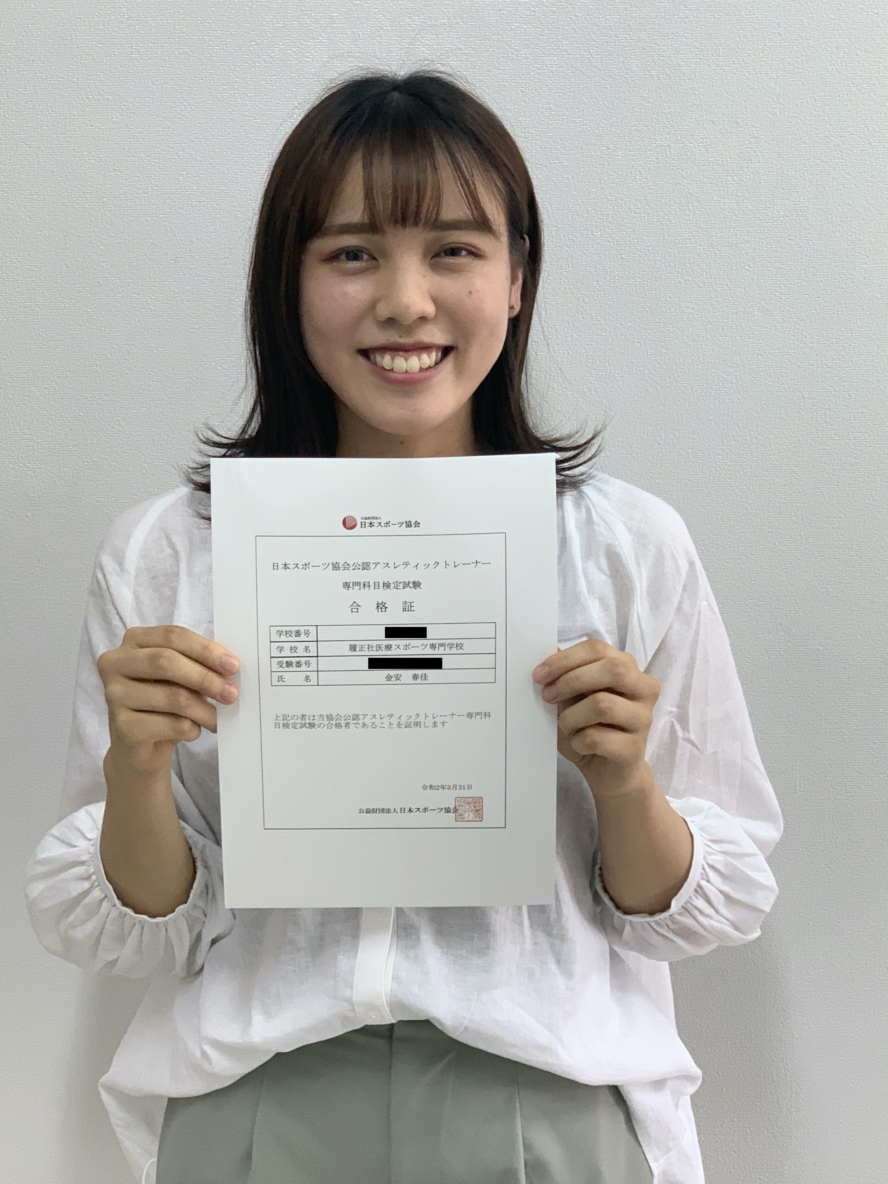 「理学療法士とアスレティックトレーナーとも同時に合格することができ、とても嬉しいです。これまでご指導いただき支えてくださった先生方に感謝して、これからは人の役に立てるように頑張ります。」