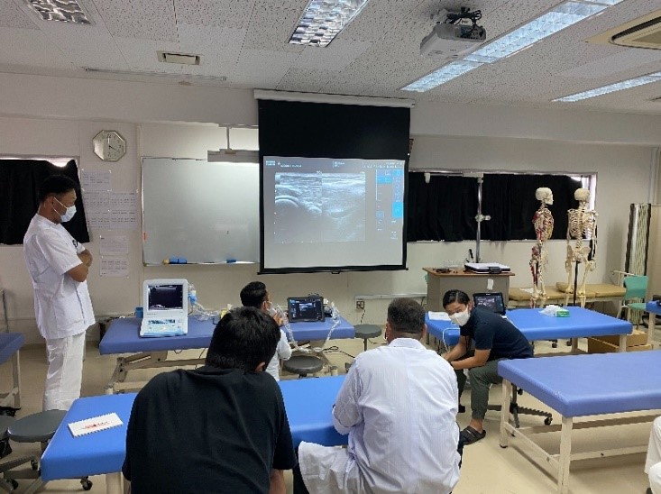 先日、本校に授業で使う超音波(エコー)診断装置が導入され、研修がありました。