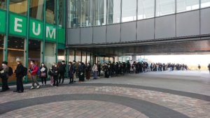 会場の入り口では受験生が一列になり、一人一人検温が実施されるという何とも言えない緊張感の中、「結構です」と言われると一瞬ホッとした表情になり、会場へ入っていきました。