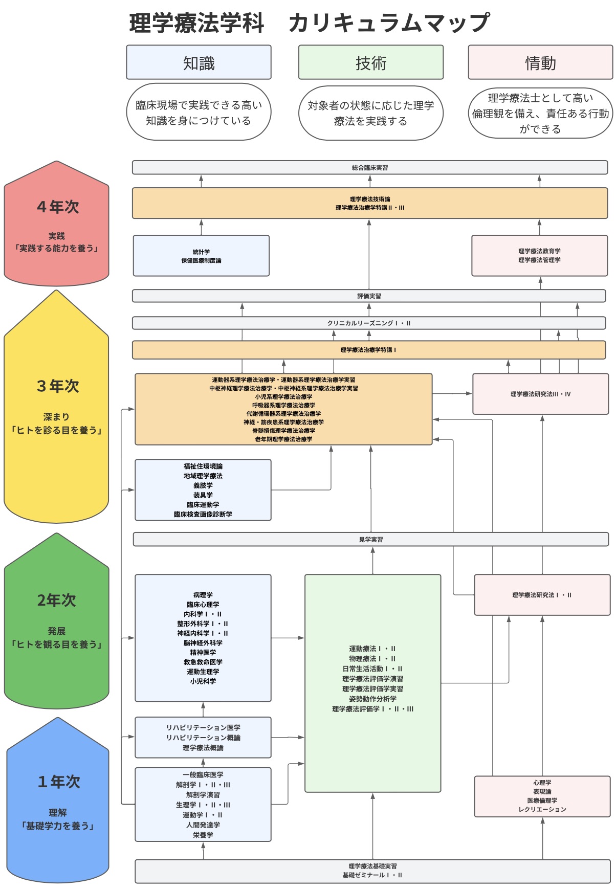 2年次・・・疾患やそれによる障害やその評価方法について学びます。
