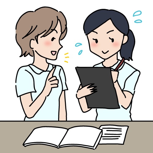 新人の理学療法士に対して、業務報告や相談を受けたり、業務に対して助言をすることも重要な仕事になります。