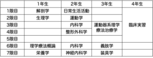 今回は本校理学療法学科の学生がどのようなスケジュールで進むのかをお話します。