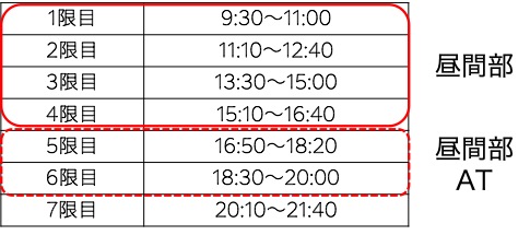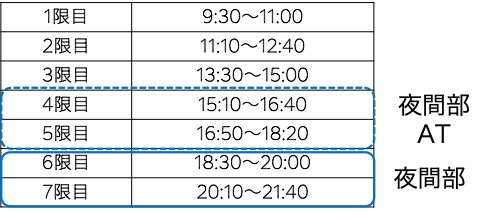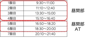 昼間部のATとのWラーニングの学生は「5限目」と「6限目」にATの授業を受けることになります。