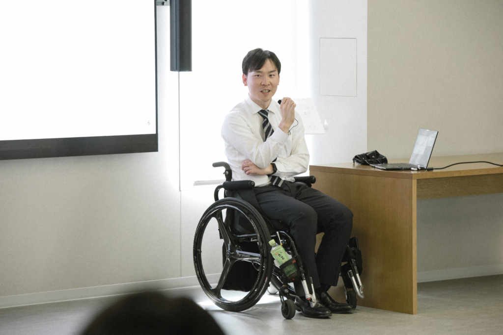 「営業マンなので数字を上げていきたい、とかはあります。ですが、いったん仕事のことはさておき。直近のことだと……、講演の最後にもお話しましたが、今、ゴルフをしたいと思ってまして。そのために、リハビリを頑張っています。なんていうのか……、『立つため』『歩くため』にリハビリするのって、精神的な意味でもめっちゃ大変なんです。ゴルフって絶対、歩くじゃないですか。ゴルフするために、『歩く』。そういった、活動を楽しむためのリハビリ、トレーニングなら、モチベーションも保てるのかなと感じていて。今は再生医療などもありますし、選択するかどうかは別として、いつか車椅子からは卒業したい。あきらめてはいません」