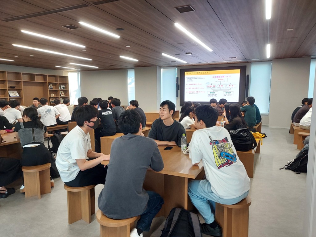 こんな症例が立てられ、グループワークがスタート。自宅、通学時や学内、趣味や生き甲斐において、それぞれ困りそうなことを考えながら話し合います。