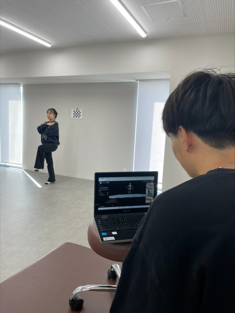 目の前のモニターには、その動きが詳細に記録されており、姿勢やバランスの微妙な変化を科学的に分析しています。AIの技術進歩も早いので教員も含めて後れを取らないように日々研鑽しています。