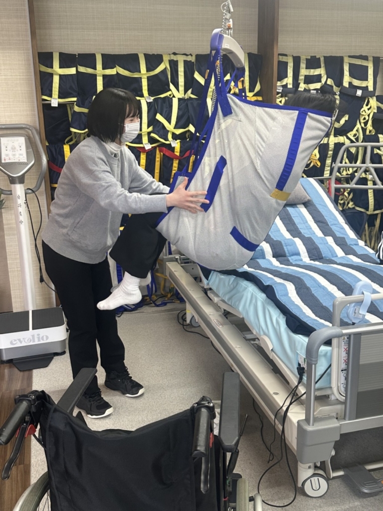 今回は、福祉機器の専門の企業様のご協力の基、介助用リフトについて学ばせていただきました。