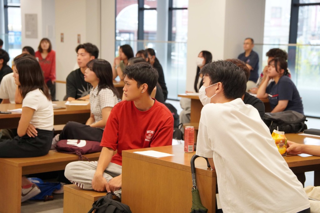 特にチームトレーナーとしての活動内容は、エピソードが具体的で、PTとAT、ふたつの資格を持っていることで得られるメリットがわかりやすく、うんうんとうなずきながらメモを取る学生の姿が見られました。