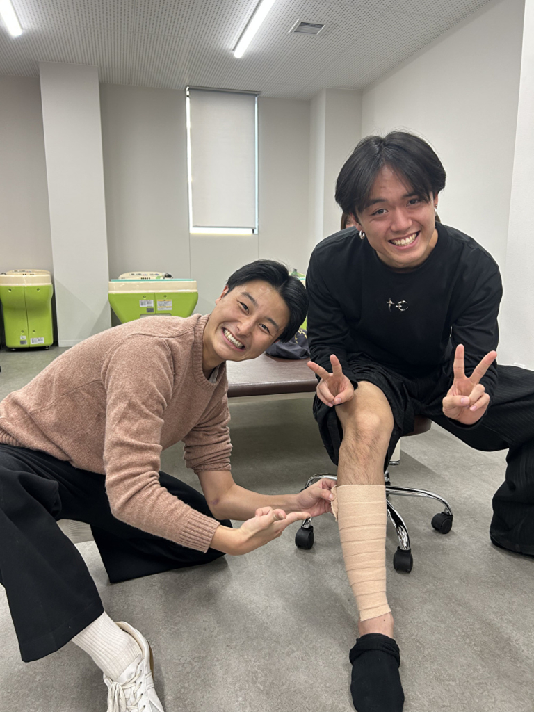 いかに綺麗に効果的に弾性包帯を巻くことができるか、学生間で競い合っているシーンもあり楽しみながら実技を行う様子が見受けられました。