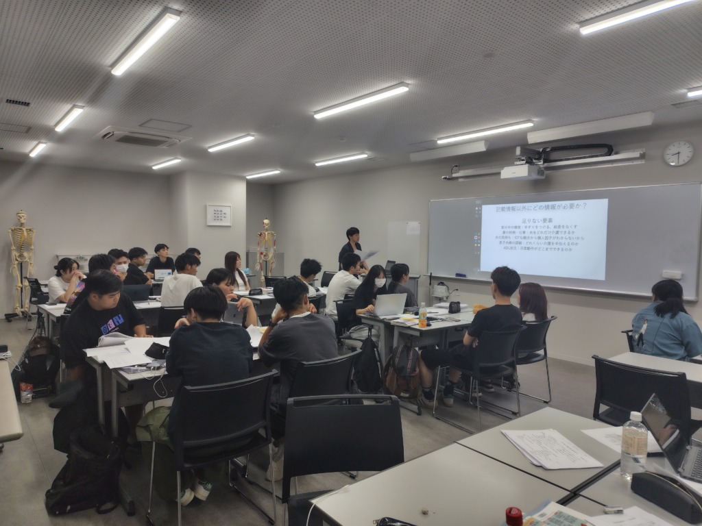 理学療法学科1年生の授業の1コマ