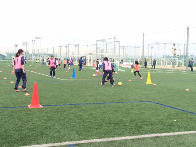 当日は雨予報となっており心配でしたが、日頃の行いが良いのか、フェスティバル中は雨も降らず子どもたちと楽しくボールを蹴ることが出来ました。