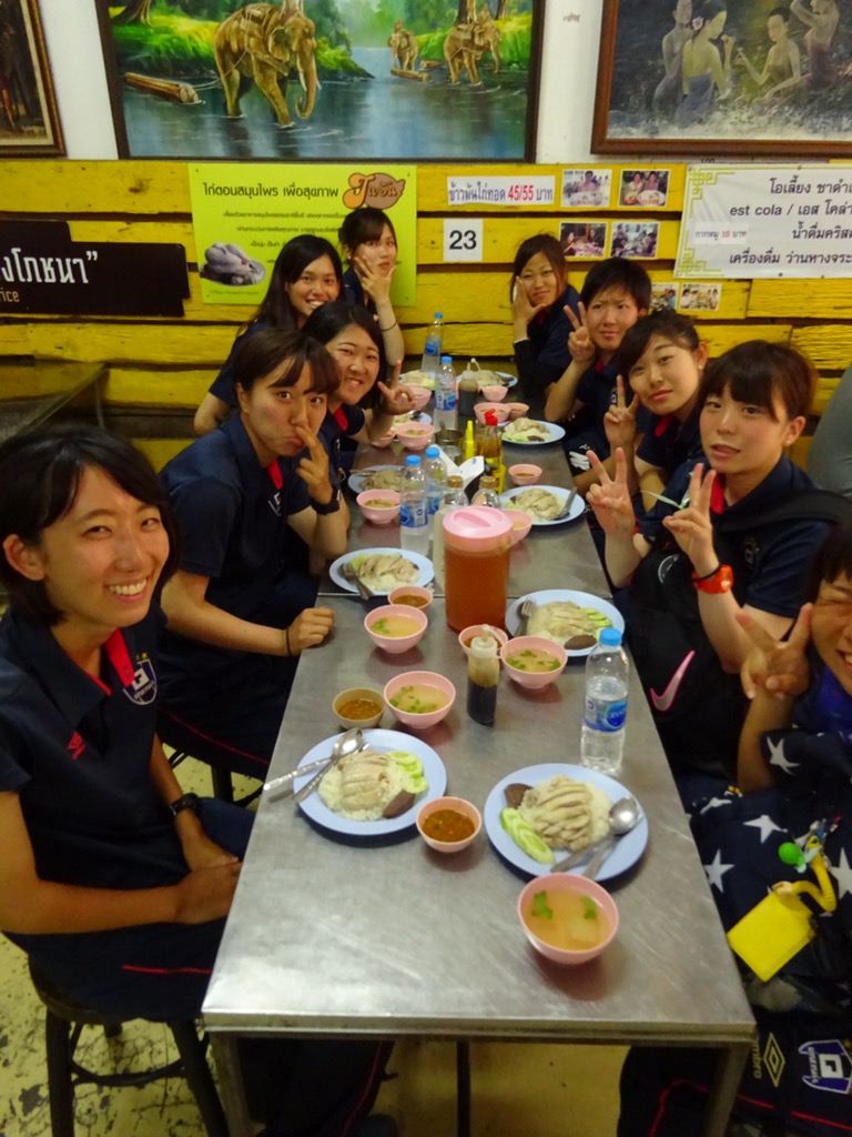 その後バスで移動し、タイ料理のチキンライスを全員でいただきました。