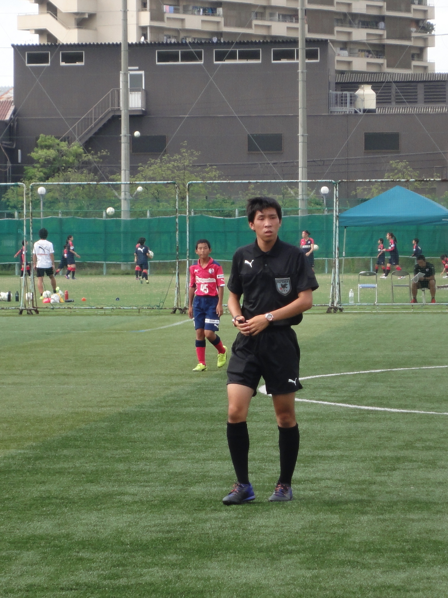 「今回の実習リーダーを務めさせて頂きました紙本です。今回の実習では、大会の主審をしました。3つの会場が離れていた事もあり、連絡をこまめに取り合うことを心がけました。各地から参加していたチームのコーチの方々やセレッソ大阪の運営スタッフの方々ともコミュニケーションを取り、貴重な話も聞かせてもなどして、とても良い経験をする事が出来ました。全員で協力して大会をサポートし、皆さんに喜んでもらえたので嬉しかったです!」