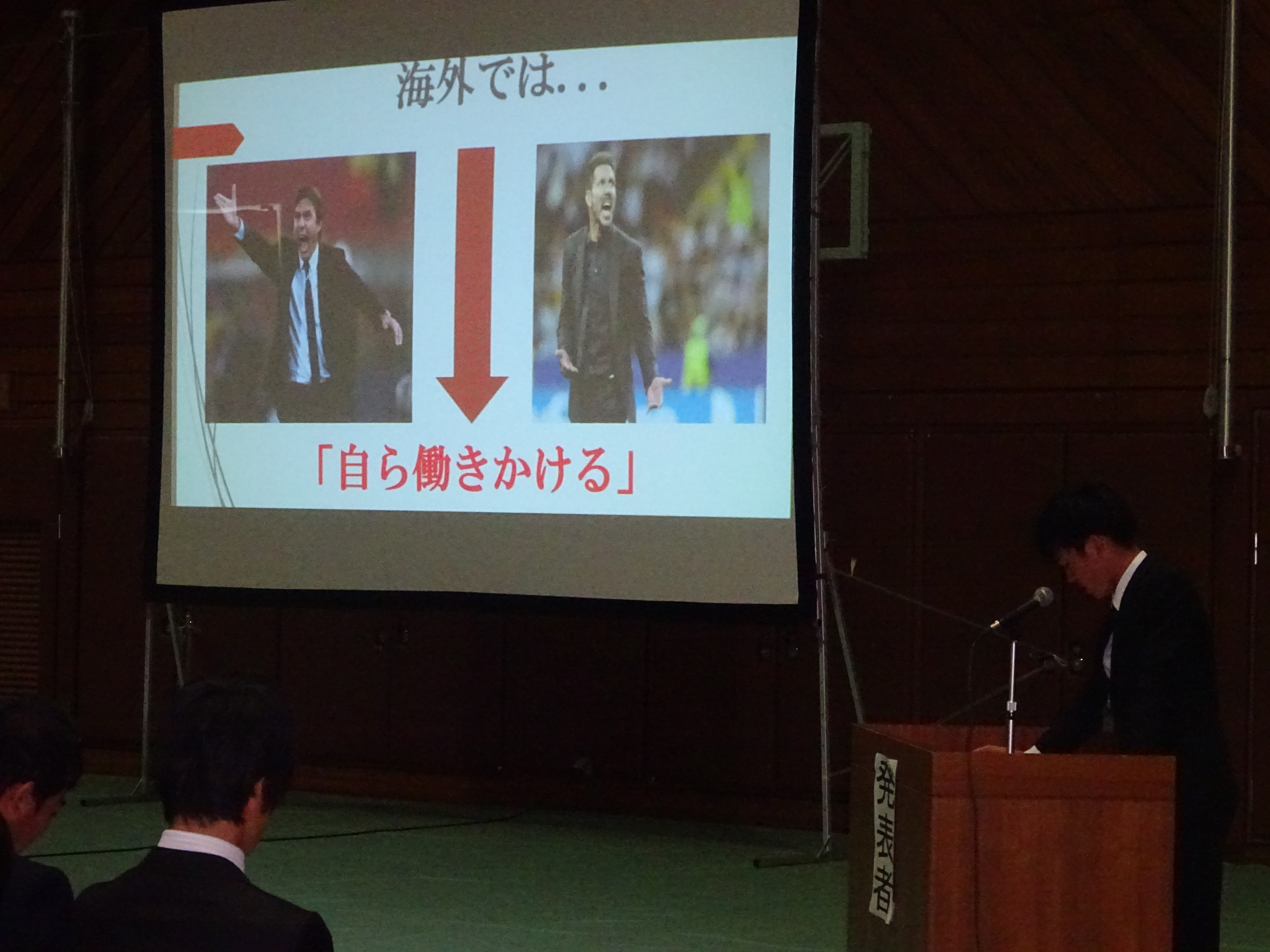 同じくサッカーコースを代表して発表した亀井君・田中壮君もとても素晴らしいゼミで、サッカーコース2年全員が