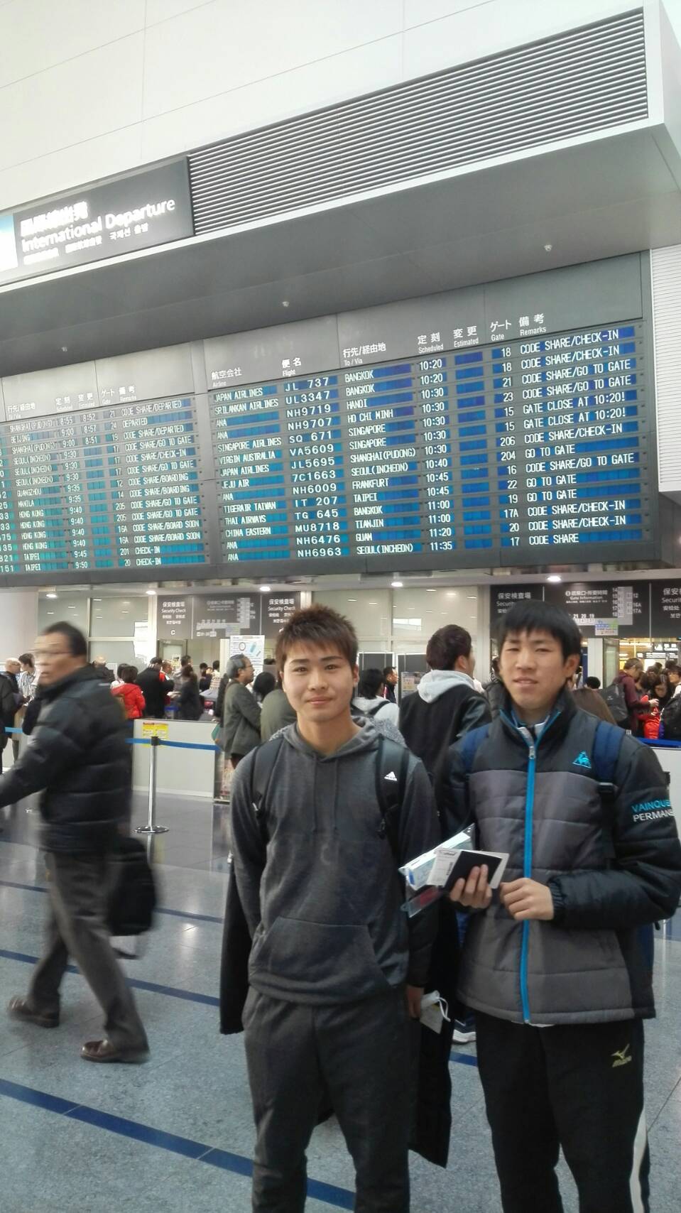 セキュリティチェックが完了しX線確認を終えた荷物を受け取る所まで、私も保護者の方々と保安検査場入口で見守っていましたが、二人はその様な思いも気が付かず、奥へ進んで行ってしまいました。(寂しい~)