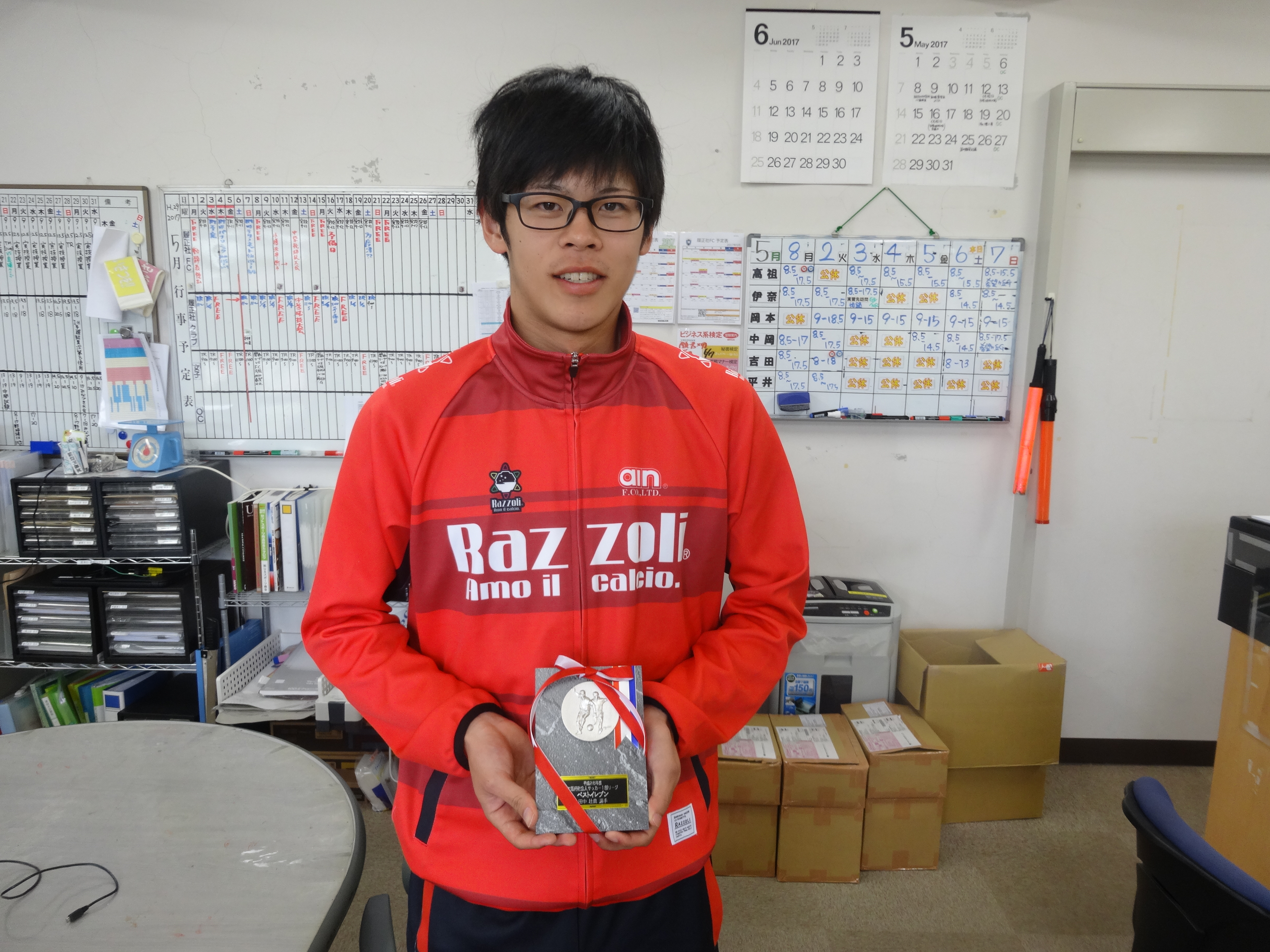 田中君は履正社FCのキャプテンとしてチーム最多得点を挙げる活躍を見せました。